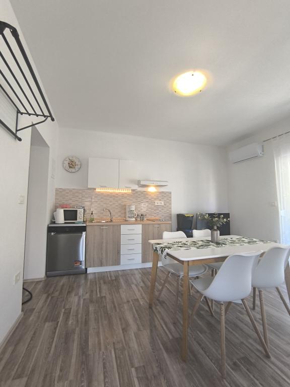 Nous avons passé des vacances fantastiques dans un bel appartement lumineux et moderne. La communication était excellente, même si je ne parle ni croate ni anglais parfaitement ! Un accueil chaleureux, un réfrigérateur rempli de boissons et de fruits, et des fruits du jardin pour le petit-déjeuner du lendemain. Que demander de plus en matière d'hospitalité ?! Toujours disponible pour répondre à vos questions, et le linge de maison (serviettes, draps, etc.) nous a même été apporté pour un changement. Merci pour ce merveilleux moment et pour les délicieuses olives en guise de cadeau d'adieu. Nous reviendrons sans hésiter !