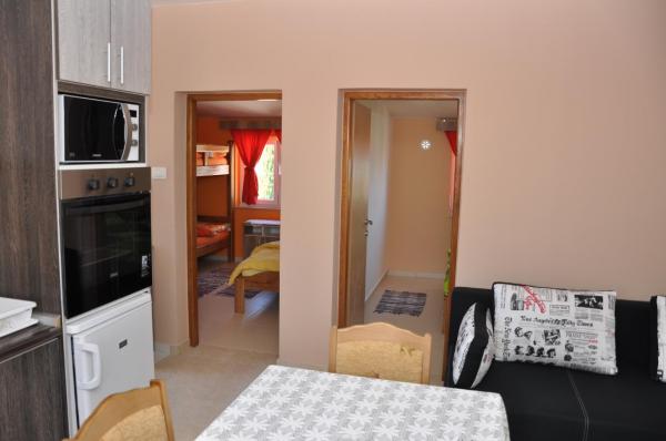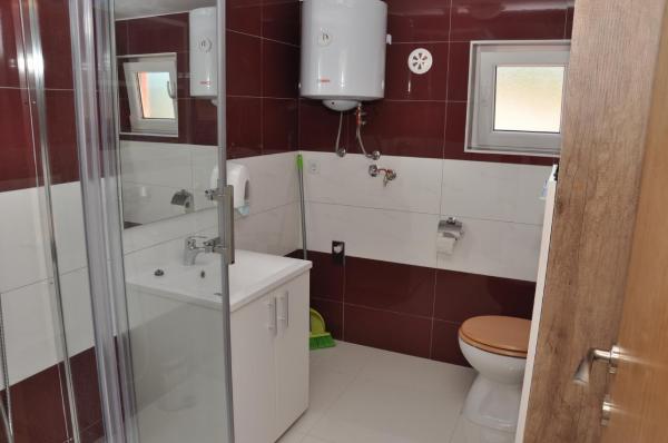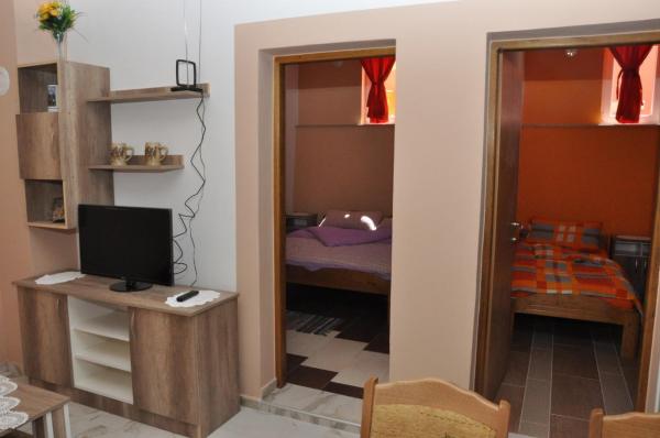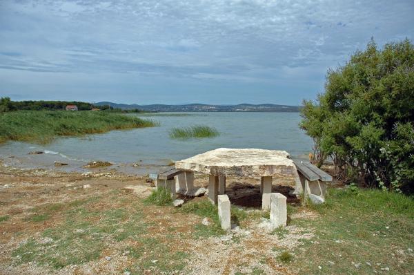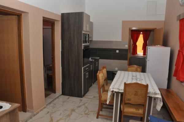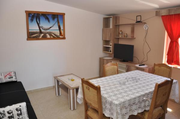 Bienvenue aux appartements Dora. Location de deux appartements séparés flambant neuf (énergie certificat B) sont à Gornji Karin, près de Zadar et Novigrad. Les appartements offrent une vue sur la mer et Velebit, sont situés à 300 m de la plage, chacun a 60 m2 et ont une entrée séparée. Elles sont équipées d'intérieur de qualité: salon et cuisine, deux chambres, une salle de bain privée avec douche et couloir. Les appartements disposent de la climatisation, wi-fi, TV satellite, réfrigérateur, four, plaques à induction, micro-ondes, des couverts et des boissons. Un appartement dispose d'une terrasse couverte et un balcon. cour entièrement est pavée de pierre naturelle de Benkovac. Dans la cour, deux tables de pierre avec des bancs en chêne, plate-forme pour une piscine pour les enfants, deux grands spit (grillé) avec un bureau, dans le cadre d'un grand parking.