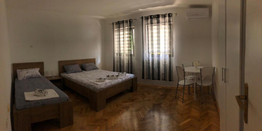 Appartements Nikola est situé dans un quartier touristique calme de Gradac à 7 minutes à pied de la plage, du centre, des restaurants et des autres installations nécessaires pour des vacances d'été actives. La maison se compose de 3 appartements, dont deux triples et un appartement de quatre lits. Chaque appartement dispose de la climatisation, d'une connexion Wi-Fi. En plus du contenu de l'appartement, vous pourrez utiliser la cheminée et un parking gratuit est fourni.