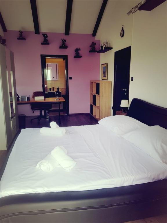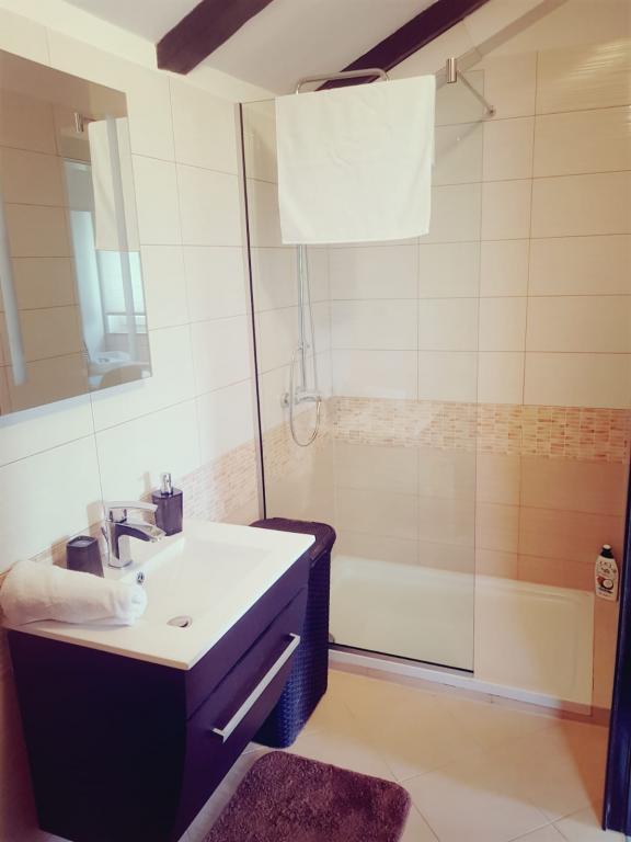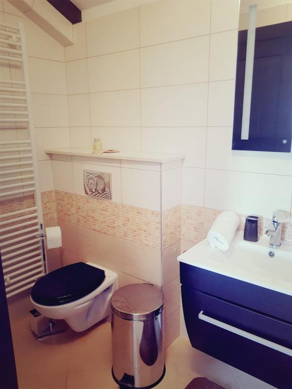 Maison de vacances dans un quartier calme de la rivière, à Jelenje na Grobniku, à seulement 15 minutes du centre de la rivière ou de la mer et des plages et à seulement 5 minutes de l'hippodrome et de l'aéroport de Grobnik et à 15 minutes de Platak et de la station de ski. Maison de vacances entièrement rénovée, moderne, aérée et facile à utiliser. Sur une superficie de plus de 250 m2 sur deux étages reliés par un escalier intérieur il y a tout le nécessaire pour accueillir 8 personnes. 3 chambres (deux avec un grand lit double et une avec la possibilité de séparer deux lits selon les besoins) et un salon avec un grand canapé pour 2 personnes. chaque chambre est équipée d'une télévision par satellite tandis que les deux plus grandes chambres sont également équipées d'un bureau. La maison dispose de deux salles de bains, dont une à l'étage inférieur à côté du salon, et l'autre dans la plus grande chambre principale qui dispose également d'un balcon. Le rez-de-chaussée comprend un salon spacieux, une salle à manger avec cuisine et des escaliers de design d'intérieur qui relient le rez-de-chaussée et le premier étage. Au sous-sol il y a une salle de gym, des toilettes et un billard et un bar.