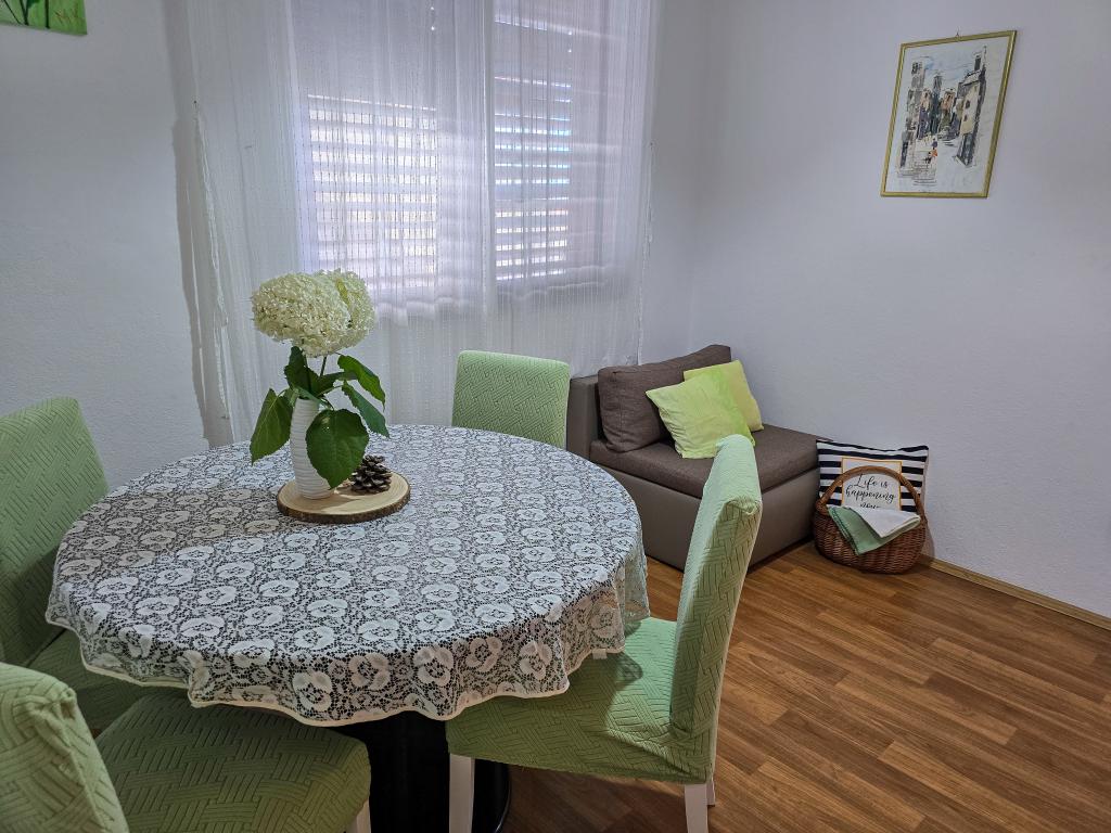 Grande smjetsaj, belle vue depuis le balcon, des appartements très bien rangé; très hôtes sympathiques, discrets, et très accessible à toutes les informations. Endroit tranquille, parking juste en face de la maison, épicerie à proximité, à 15min à pied du centre. Plaza à la baie Pokonji en bas de la belle, la mer propre, avec plusieurs restaurants, à proximité du chemin de la pente de la plage (grande formation), mais a un chemin autour d'accès en voiture. Extrêmement satisfait.