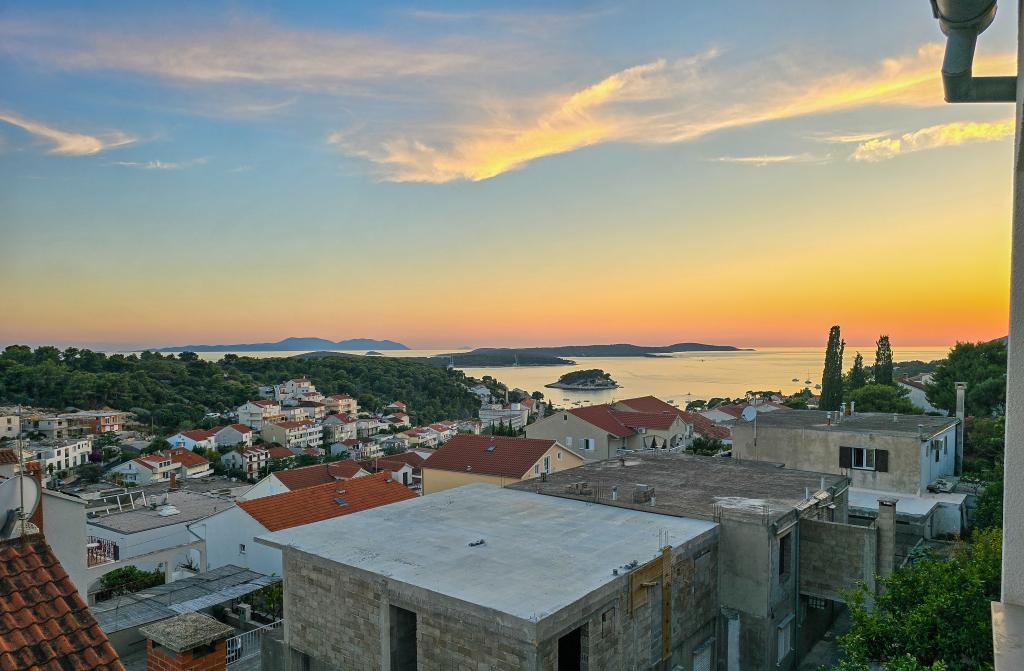 Nous sommes situés sur l'île de Hvar, dans le quartier calme de la ville de Hvar, à seulement 10-15 minutes à pied du centre-ville ou à 5 minutes en voiture. Nous sommes situés à quelques minutes à pied du petit magasin où vous pouvez acheter tout ce dont vous avez besoin et des plus belles plages de la ville. La plage a deux restaurants, avec la possibilité de louer des chaises longues, des parasols, des bateaux, des pédalos et autres. Notre maison familiale a une grande terrasse avec jardin et une cheminée que vous pouvez utiliser. Nous avons aussi un parking privé. Presque tous nos appartements / chambres ont vue sur la mer, les îles de Vis et de Korcula et les îles Pakleni. Linge de lit, serviettes (grandes et petites), taxe de séjour, électricité, eau, parking, sanitaires, nettoyage final, animaux de compagnie autorisés et internet. Si vous choisissez d’être nos hôtes, nous pouvons vous accueillir au bord de l’eau ou en bus catamaran, en fonction de l’heure de votre arrivée. Pour plus d'informations, n'hésitez pas à nous contacter! Merci et bienvenue!