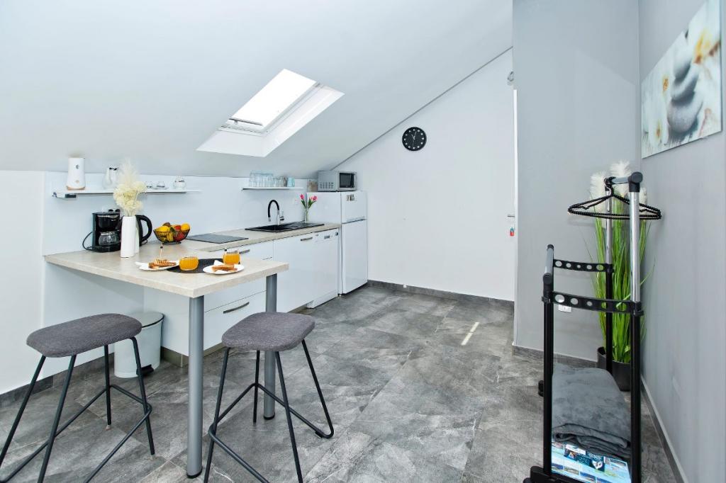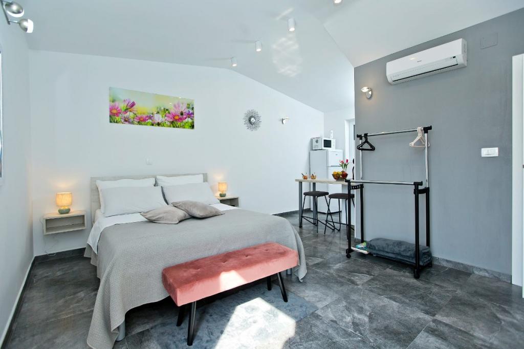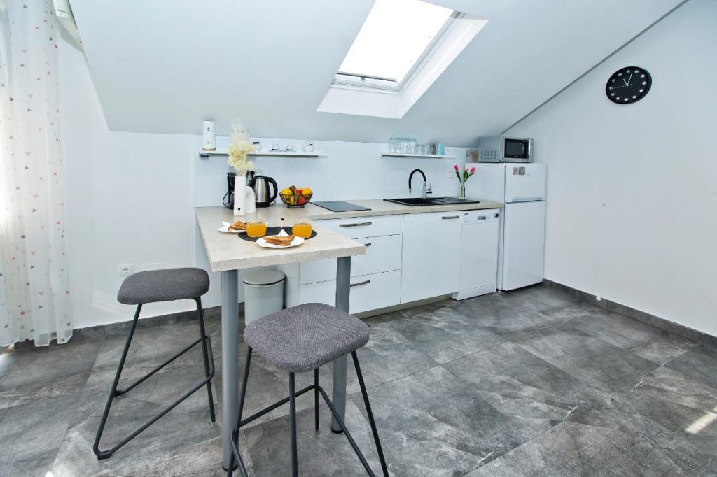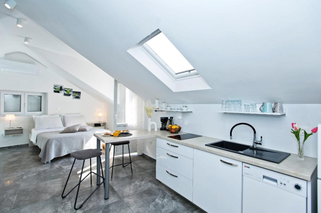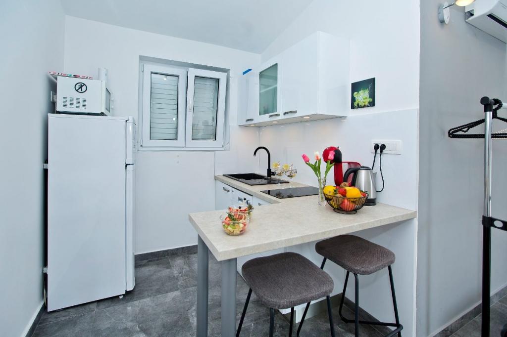 Élégamment décorés et situés en plein cœur de Hvar, ces studios offrent un parfait équilibre entre confort et emplacement idéal. Lumineux et modernes, ils sont équipés d'un lit double confortable (160 x 200 cm), d'une cuisine entièrement équipée avec tous les équipements nécessaires (réfrigérateur-congélateur, bouilloire, grille-pain, plaques de cuisson, micro-ondes, lave-vaisselle), d'une salle de bain avec douche à l'italienne, de la climatisation et d'une terrasse privative (table, chaises et transats) offrant une vue imprenable sur la vieille ville et le magnifique port de Hvar. Profitez pleinement de Hvar à deux pas de votre studio : charmants cafés, restaurants de qualité, adresses conviviales pour le petit-déjeuner, boutiques locales et magasins de souvenirs. La place principale, avec la cathédrale Saint-Étienne et le plus ancien théâtre public d'Europe, est à seulement 3 minutes à pied. Vous séjournerez en plein centre de Hvar, dans une rue calme et paisible, vous garantissant des nuits reposantes.