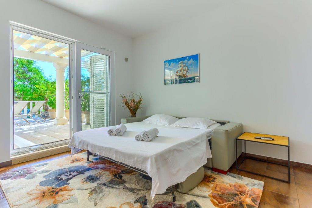 Des appartements nouvellement construits et équipés de façon moderne sont situés juste à côté de la plage dans la paisible ville d'Ivan Dolac. Les appartements Unit 1 et Unit 6 sont pour 4 personnes, ils se composent d'une chambre avec un lit double 160 x 200, une salle de bain avec douche, une cuisine et une salle à manger, et un salon avec SAT-TV et un canapé-lit, et une terrasse avec une belle vue sur la plage, la mer et les îles. Les appartements P1 et P2 sont pour 8 personnes, ils se composent de 3 chambres et un canapé-lit dans le salon, 2 salles de bain, une cuisine entièrement équipée avec un lave-vaisselle, une salle à manger et une table à manger sur la grande terrasse devant avec vue de la mer. L'appartement P2 a une superficie plus grande que P1, car il a une chambre entière et une salle de bain à l'étage inférieur. Un restaurant et des cafés sont à seulement 20 mètres et une boutique à 100 mètres de l'appartement. Bien que la maison soit située en plein centre de cette petite ville touristique, elle offre une tranquillité et une intimité totales car les clients sont principalement des familles avec de jeunes enfants qui profitent des belles plages et de la mer cristalline.