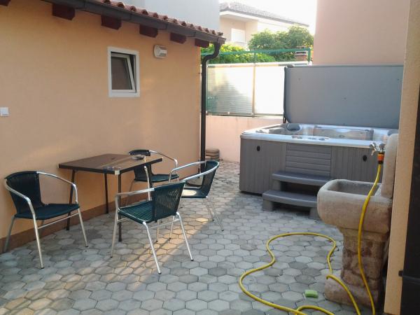 Nouveau, kopletno et équipées de façon moderne maison sur deux étages. Rez de chaussée - cuisine, salon, salle à manger et grande terasmo couverts et WC et une chambre. Au premier étage, deux chambres, une avec un balcon et une grande salle de bains avec douche et WC. La cour est clôturée et a ouvert, et a trois places de stationnement. Dans la cour, une douche extérieure et barbecue.