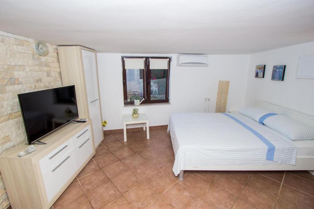 La maison se situe à Jadrija, un village paisible près de Šibenik, bordé par une mer cristalline et offrant une vue imprenable sur les deux magnifiques îles de Zlarin et Prvić. C'est l'endroit idéal pour des vacances en famille reposantes, loin de la foule. En été, Jadrija est relié à Šibenik par bateau via le canal Saint-Antoine, permettant ainsi une traversée agréable et originale sans se soucier du stationnement. La maison se trouve à seulement 300 m de la mer et d'une plage bien entretenue, accessible en 5 minutes à pied. Trois appartements entièrement équipés sont disponibles, chacun avec climatisation, Wi-Fi et télévision par satellite. Deux appartements au premier étage disposent d'un balcon avec vue partielle sur la mer, parfait pour savourer un café le matin ou se détendre en soirée. L'appartement du rez-de-chaussée (hauteur sous plafond de 2 mètres) donne accès à un grand jardin méditerranéen avec barbecue et douche extérieure, idéal pour profiter du plein air et se retrouver entre amis ou en famille. Un parking est prévu devant la maison pour les trois appartements. Parking privé. Idéal pour les familles.