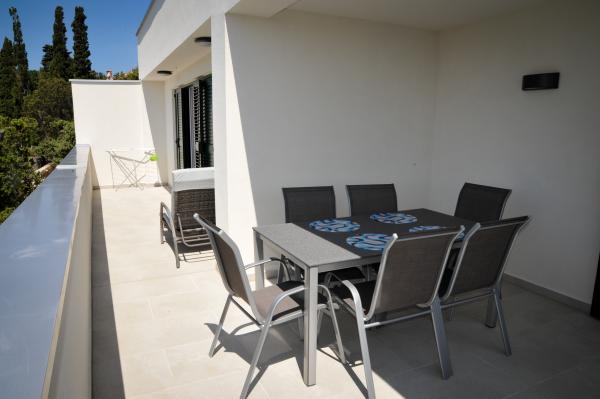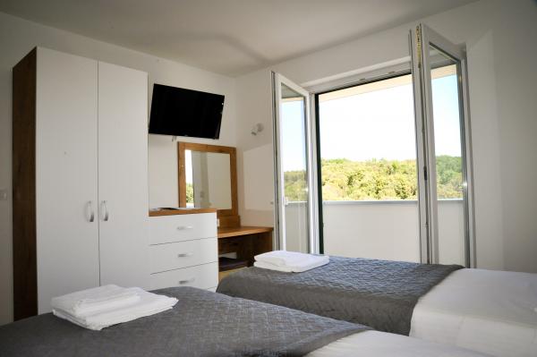 Objet nouvellement construit avec 6 appartements construits selon les dernières normes et conditions de catégorisation des installations. L'établissement se trouve à 3 minutes à pied de la plage et de la magnifique baie de Matovica. Les appartements sont confortables et entièrement équipés. À côté de l'objet, il y a une piscine chauffée pour les invités de l'établissement. Toutes les chambres disposent d'une salle de bains séparée, d'une télévision à écran plat et d'un bureau de maquillage. Dans les chambres, il y a des lits qui peuvent être joints et séparés, selon les besoins du client. Dans l'établissement, ainsi que dans les appartements, l'entrée est possible avec une carte ou un mot de passe, de sorte que le client ne doit pas s'embêter avec les clés. Chaque appartement dispose d'une belle grande terrasse et d'un balcon.