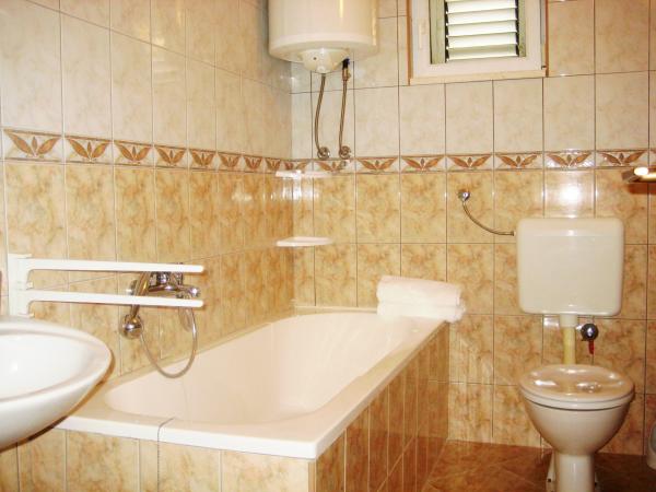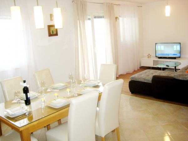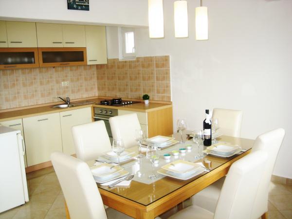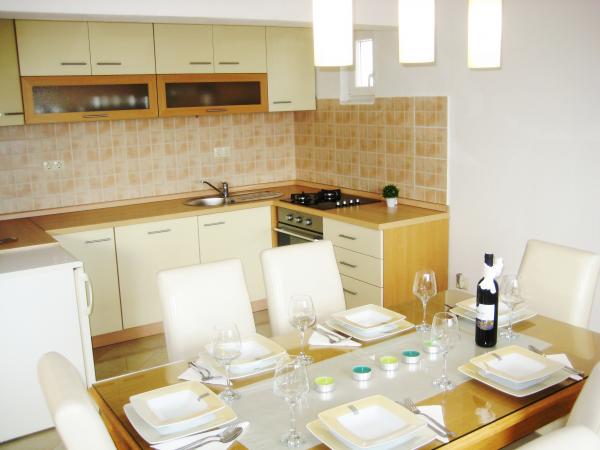 Appartement Antton est destiné à un total de 8 personnes. et est situé dans une maison dans un quartier calme de Kastel Kambelovac et vient d'être rénové et confortablement meublées. Il se compose d'un salon / cuisine et salle à manger spacieuse, 3 chambres et 2 salles de bains. Chaque fenêtre dans le salon et la salle à manger offre une vue imprenable sur la mer et les oliviers qui se trouvent dans le jardin. Vous pouvez profiter d'un barbecue dans le jardin, qui est entouré d'oliviers ou sur la terrasse avec une vue imprenable. L'appartement dispose de trois chambres, une chambre avec deux lits simples et les 2 autres chambres ont chacune un lit double. Les deux salles de bains sont entièrement équipées, y compris machine à laver. Une salle de bain dispose d'une douche et la deuxième salle de bains dispose d'une baignoire. L'appartement offre toutes les commodités nécessaires pendant le séjour (une connexion Wi-Fi, air conditionné, télévision par câble, lave-vaisselle, lave-linge, sèche-cheveux, fer et planche à repasser, serviettes, literie.). . Deux parkings privés sont disponibles en face de la maison.