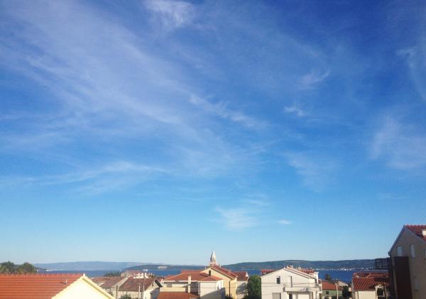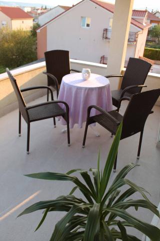 Appartement **** est situé au deuxième étage de la maison. Spacieux et moderne dispose d'une belle vue sur la mer et le centre (cca350-400m) .Dans est à proximité de la plage (400m), bureau de poste (300), la station de bus (37 hangar Split-Trogir cca250m), supermarché (100m) Docteur (60m) .. La maison dispose d'une terrasse couverte, barbecue et la pelouse endroit idéal pour socialiser et se détendre.