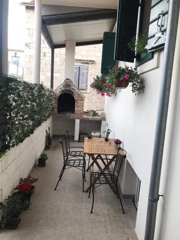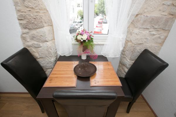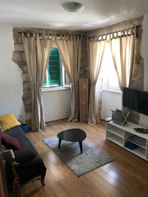 Toute la maison est construite en pierre, dans un style authentique de la Dalmatie sur trois étages. La vue inclut la baie de Kastela, Split, Ciovo péninsule et l'île de Brac. Distance de la mer est à seulement 50 mètres. Appartement moderne intérieur combiné avec pierre dalmate fait de la place dans la maison particulière et agréable. Le design est moderne, sans doute sur la qualité et la tradition. Ville Kastela s'étend 17 km de long la côte au pied du mont Kozjak. Il est situé entre Trogir et Split, et est sous la protection de l'UNESCO.