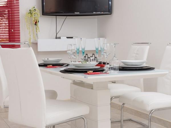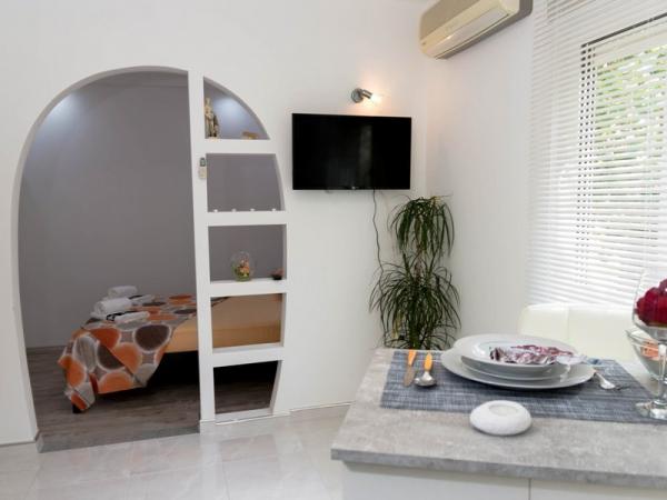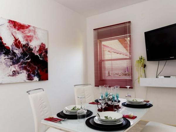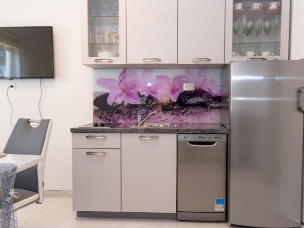 Les appartements '' Ljiljana '' entièrement équipés et modernes, avec tous les appareils ménagers, y compris les lave-vaisselle, ainsi que tous les ustensiles de nettoyage, qui font partie des nécessités du service et de l'hygiène (savon, shampoing, papier de toilette) se trouvent sur la surface herbeuse (env. 800 m2) avec un accès direct à la plage et à la plage, qui provient de la même parcelle, est une petite crique de sable et de buissons. L’essence même du lieu réside dans le fait qu’il n’est pas près de la route et que chaque client a la vie privée et que la surface en herbe, ainsi que la crique, sont propices à la joie des enfants et aux vacances sans soucis de leurs parents. À côté de l’apathie, une terrasse couverte séparée (45 m2) surplombe la baie de Kaštela, le soir et pendant la journée. Le bruit de la mer pendant la nuit et le silence interrompu par les symphonies font l’affaire. En plus de la terrasse, un barbecue et des chaises longues sont mis à votre disposition gratuitement. Dans l'appartement est un parking privé et couvert.