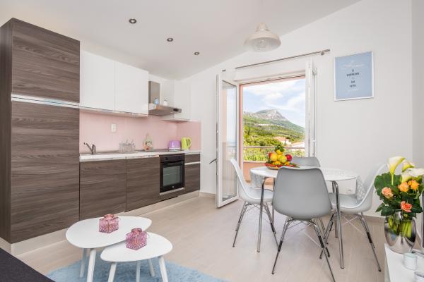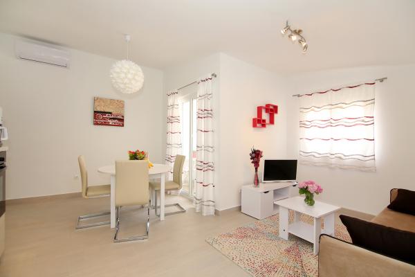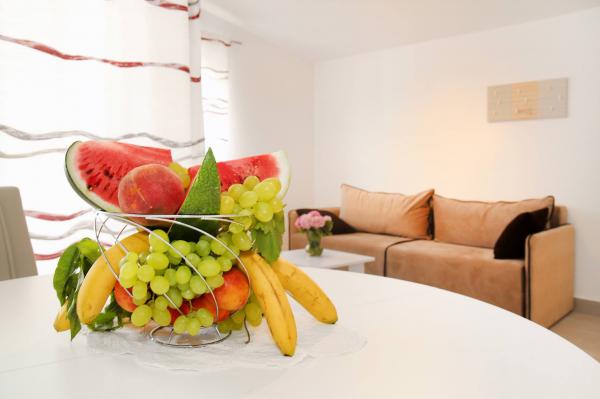 Appartement neuf situé à Kastel Stari entre deux UNESCO ville protégée de Split et Trogir. Situé au dernier étage de la maison (troisième) étage offre une vue panoramique. L'intérieur est élégamment conçu et équipé. Le salon spacieux se compose d'un grand canapé, une cuisine, une télévision à écran plat offre également une belle vue panoramique avec un grand balcon. La salle de bain est moderne et équipé de tout ce dont vous aurez besoin. La chambre est spacieuse avec un lit king size confortable. Extérieur de la maison est vraiment super, dispose d'un jardin vert plein de fruits, de légumes et de fleurs.