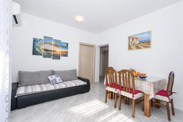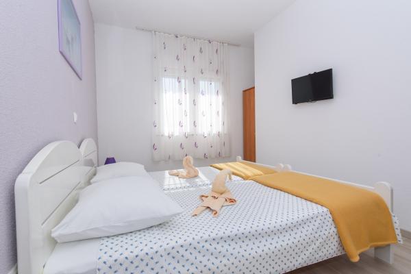 Resnik Apartments est situé dans un quartier calme, à seulement 5 minutes du centre-ville. Il est un endroit idéal pour ceux qui ont besoin de repos et de détente, ainsi que pour ceux qui sont à la recherche d'autres contenus, on peut trouver beaucoup d'activités et d'événements (manifestations culturelles, des expositions, des concerts, des soirées de pêcheurs, etc.). À une distance de seulement 100 mètres de la maison est une belle plage longue de plusieurs kilomètres (gravier et sable). Distance de la ville de Trogir, qui est sur la liste de l'UNESCO des sites du patrimoine mondial est à seulement 10 minutes, et si vous ne disposez pas d'un moyen de transport, la station de bus est 100m (horaire tous les 20min). Dans les environs immédiats il y a de nombreux restaurants et bars et de la promenade. Football et de basket, des courts de tennis et un terrain de jeu pour le beach-volley loin SU100 m. Ville de château offre un large choix pour tous les âges et vous ne seront certainement pas ennuyés. Disponible, nous offrons un parking gratuit, l'utilisation de serviettes et d'autres nécessités que vous pourriez avoir besoin.
