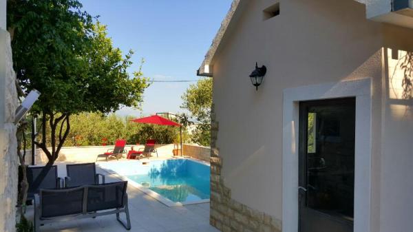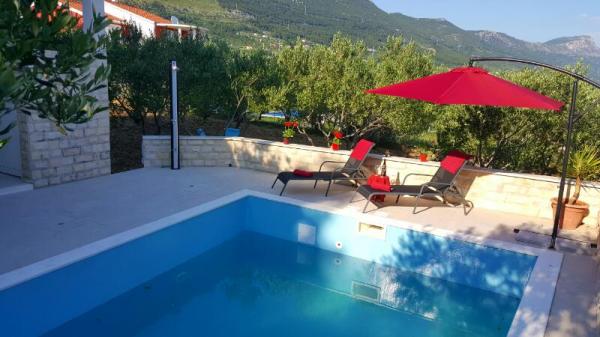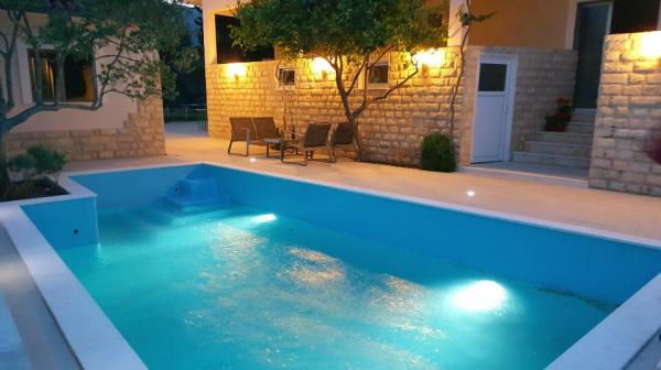 Entièrement meublé, la maison bleue avec une piscine dans la région de Rudine, Kastel Novi. L'installation est située au pied du mont Kozjak, entouré de verdure, offrant une vue imprenable sur la baie de Kastela, Split et les îles. Une oasis de quiétude pour passer vos vacances dans une maison de prostarnoj confortable, piscine équipée, calme et nuits agréables, et pourtant proche de toutes les attractions. Nous sommes situés à 5 km de l'aéroport, à 15 km de Split et à 8 km de Trogir. Pour les 5-10 minutes en voiture, vous êtes sur les belles plages. Pour les amoureux de la nature, la randonnée en montagne et le vélo, derrière la maison il y a des pentes du mont Kozjak, ainsi que la belle station balnéaire de jardin biblique, qui est la façon dont le nom lui-même dit un paradis sur terre. L'appartement spacieux dispose de 3 chambres, salle de bains, wc, cuisine, réfectoire et salle de séjour, entièrement meublés. 30m2 de terrasse, avec une vue imprenable et de l'ombre, parfait pour la saison estivale. La cour a beaucoup d'endroits pour jouer, un grand espace de parking pour 4 voitures, à la maison pour un barbecue, et un grand arbre d'olive