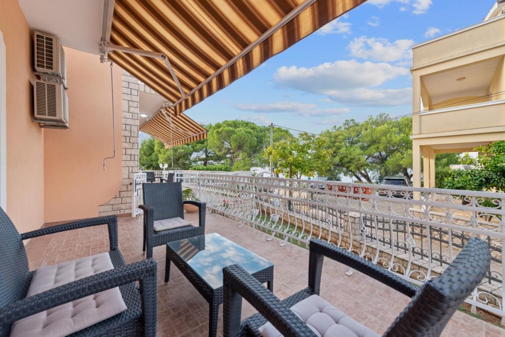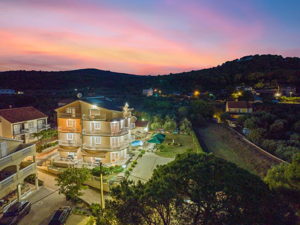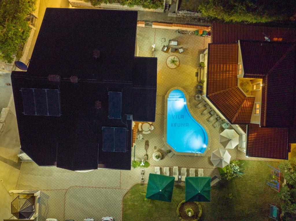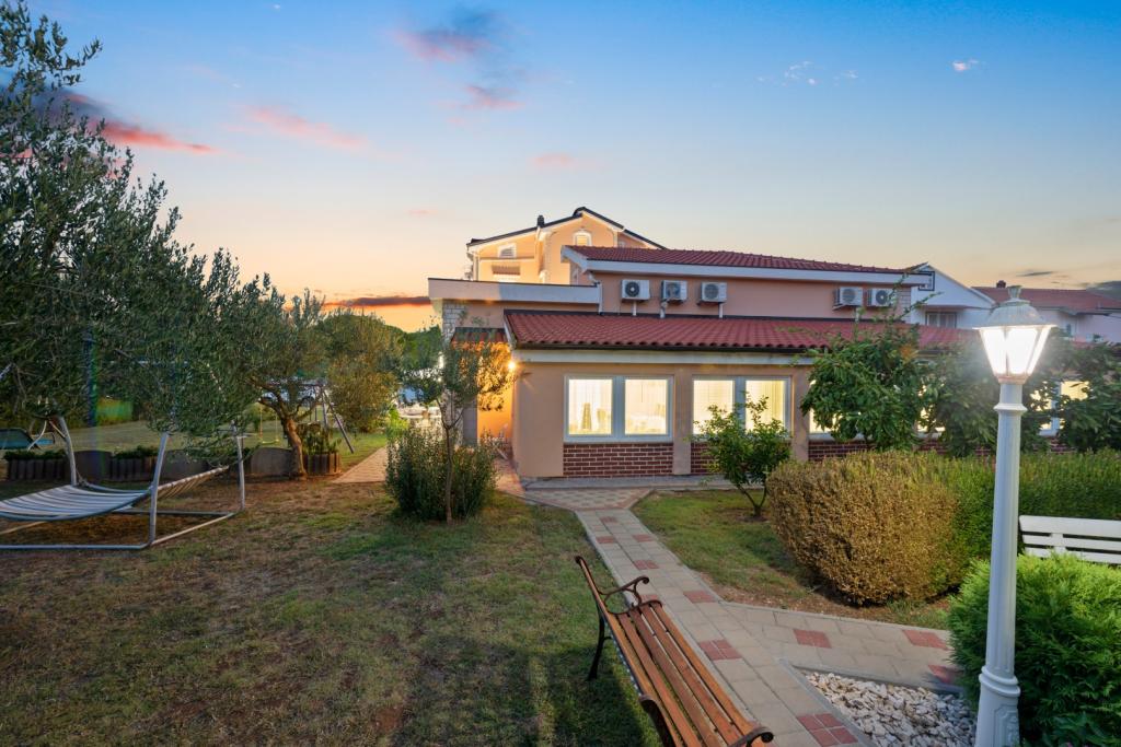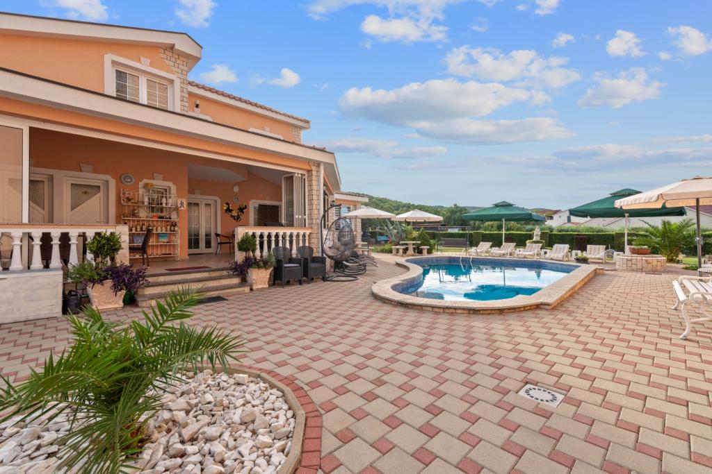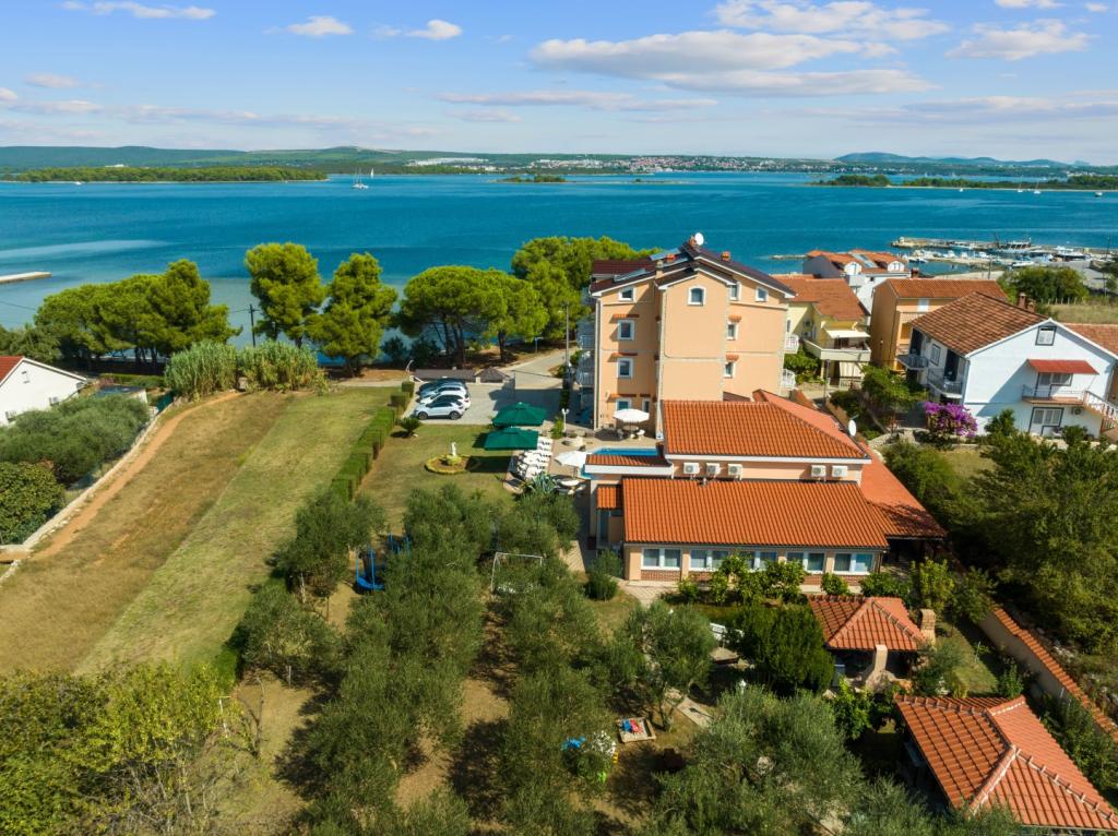 Crown Villa est un luxueux hôtel 4 étoiles qui peut accueillir 30 personnes. Villa est le premier d'une série, situé dans un bel emplacement sur la plage de sable fin avec une vue sur le canal de Pasman. Jardin avec une riche végétation méditerranéenne qui entoure la villa et le rend particulièrement attrayant. Dans le jardin il ya une piscine chauffée avec éclairage. La villa dispose de 7 suites spacieuses, chacune décorée d'une manière spéciale. Chaque appartement possède un balcon ou d'une terrasse donnant sur la mer, plage et jardin villas.