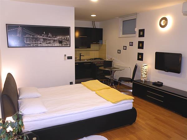 Taxe de sejour est inclus dans le prix.De l'équipement comprend la climatisation, chauffage central, cuisine entièrement équipée, Max TV (HBO, Cinemax, Package Plus, pack sport; seulement dans AP1), les téléviseurs LCD, ordinateur avec accès Internet (uniquement en AP1), Internet sans fil tout inclus dans le prix. Pour le meilleur et plus confortable sommeil de nos clients, nous avons équipé les principaux paliers de toppers qualité de matelas Dormeo 6 cm d'épaisseur remplis de mousse moulée à froid, et le choix que nous mettre trois types d'oreillers: plus ferme oreiller, plus douce et anatomique. Pour votre voiture, nous avons propre espace de stationnement.