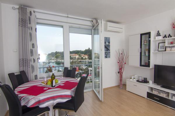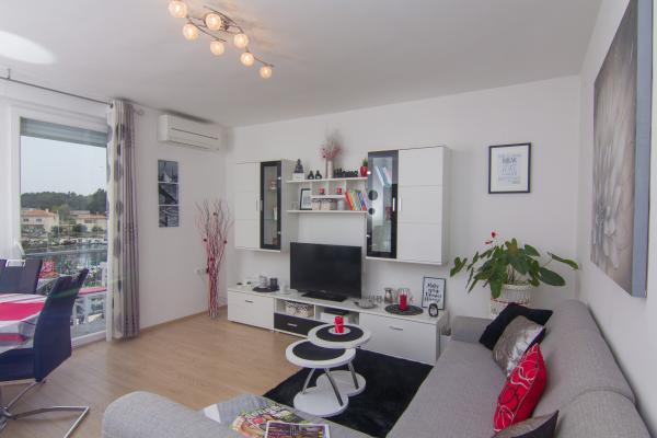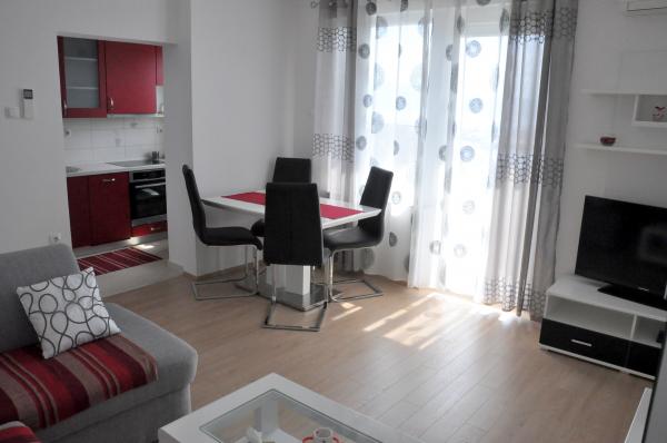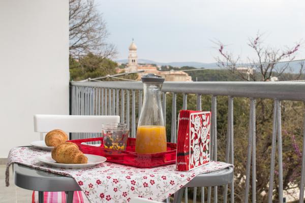 Appartement neuf et moderne dans le centre-ville, au deuxième étage de l'immeuble, à seulement 20 mètres de la mer. Le balcon offre une superbe vue sur la cathédrale de Krk, la promenade et Marina-Port. Internet et un parking gratuit. Restaurants, boutiques, marché aux poissons, marché, banque, pharmacie et de la station de gaz sont situés à seulement 100 mètres et la plage à 200 mètres.