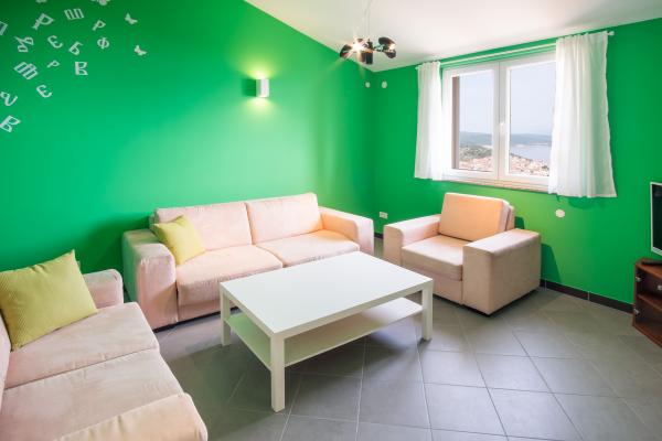 L'appartement est situé au 1er étage, situé dans un endroit calme et agréable, dispose d'une terrasse couverte avec une belle vue sur la mer et la vieille ville. Seulement 10 min. à pied du centre et des plages à proximité pour tous les goûts. Nous serons heureux de vous aider à conseiller où aller sur le voyage, dîner ou sortir. Nous sommes impatients de vous voir!
