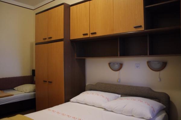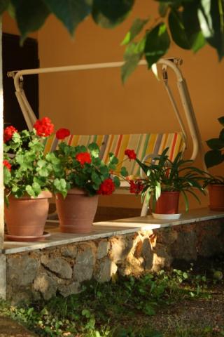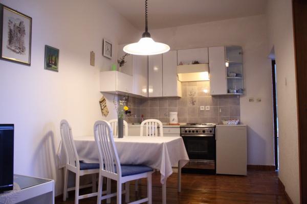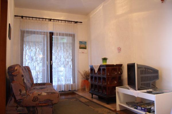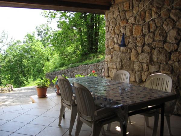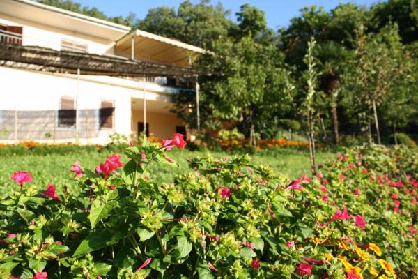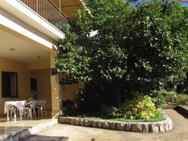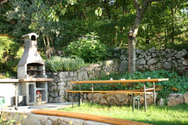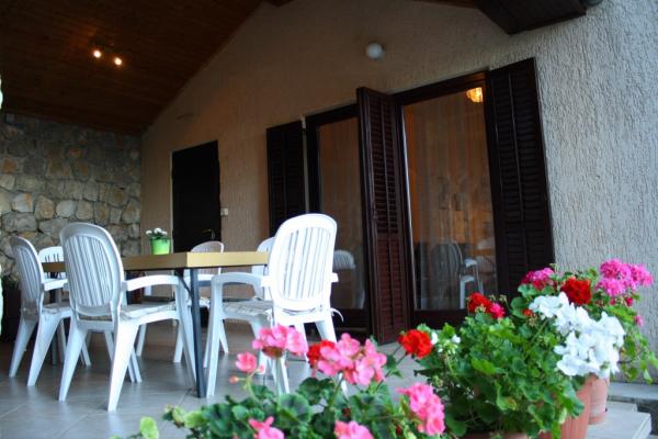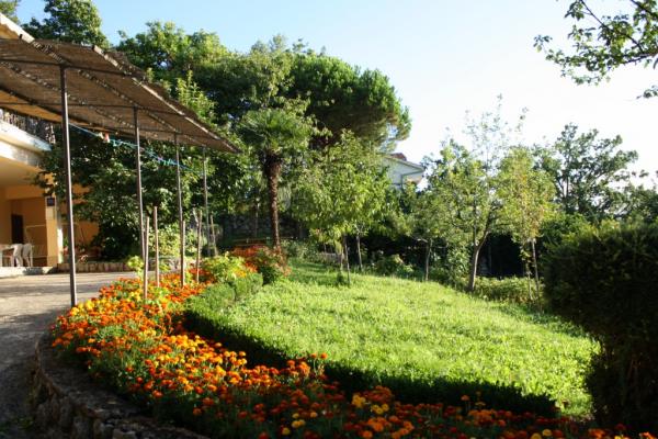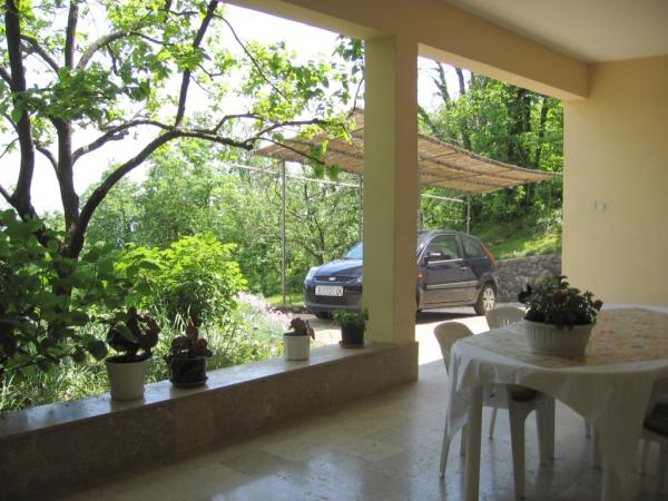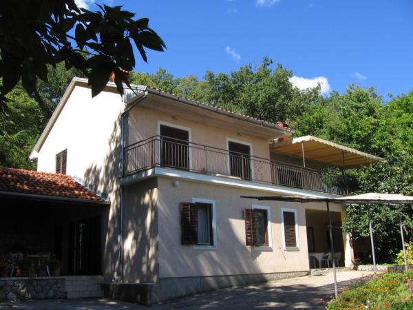 Maison avec 2 appartements. Dessus de la ville de Lovran, de 2,5 miles du centre de Lovran, sur un versant, juste au bord de la forêt, en vert. En commun: jardin - fleurs et arbres, verger. Barbecue. Parking près de la maison.
