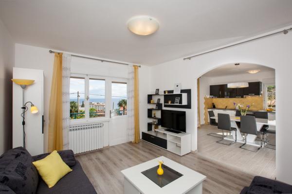 Appartement confortable et moderne dans un quartier paisible de Lovran, entourée d'un grand jardin, idéal pour des vacances en famille. Il se compose de trois chambres doubles et une salle de séjour spacieuse, une cuisine et deux salles de bains. Il dispose d'un grand balcon donnant sur la mer. Rénové de 2014. an. L'établissement est situé à 5 minutes à pied de la plage la plus proche, et à 10 minutes du centre-ville.