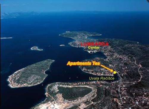 Le TEA appartements sont situés dans une baie tranquille à Lumbarda sur l'île. Ils sont situés dans la première rangée de la mer, et offrent une belle vue sur la baie. Entouré d'espaces verts. L'établissement est situé à 10 minutes à pied du centre, à 5-10 minutes de la plage rocheuse et à 30 minutes à pied de la plage.