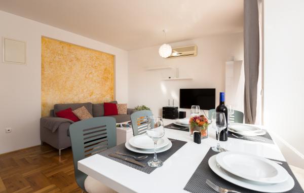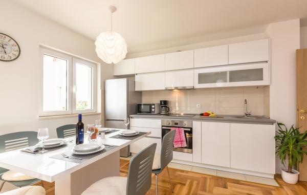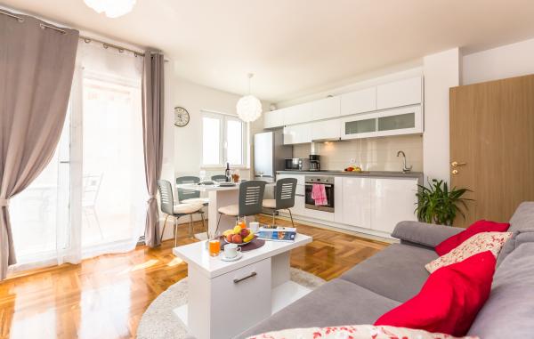 Appartement entièrement équipé et moderne Makarska. Cuisine, 2 chambres, salle de bains, salon, terrasse, parking. L'appartement est situé dans un bâtiment nouvellement construit au rez-de-chaussée une entrée séparée. Air conditionné, internet inclus dans le prix. L'appartement est situé 5 minutes. marcher jusqu'à la plage, à 10 minutes du centre. marcher. Vue partielle de la mer, l'appartement est orienté plein sud. Connectez-vous à l'appartement de 15: 00h, consultez jusqu'à 10: 00h. En choisissant notre appartement, vous avez la possibilité de louer des vélos électriques pour les loisirs, peut également offrir transversale de l'aéroport à Makarska tout ce supplément.
