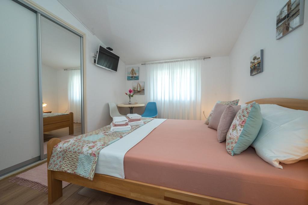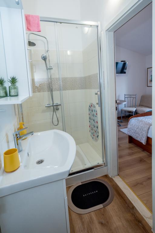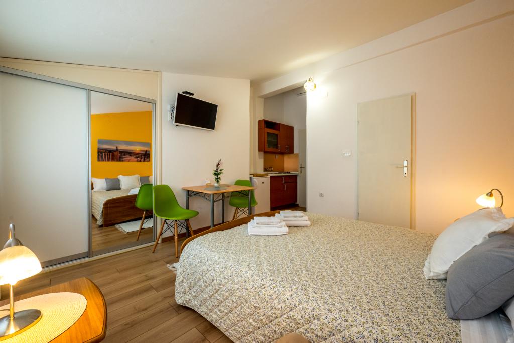 Les chambres sont propres, modernes et bien équipées. Elles se situent au deuxième étage d'une maison familiale avec une cour pour garer les voitures des hôtes. La maison est située dans un quartier touristique très agréable de Makarska, à environ 90 m de la plage et à moins de 200 m de huit hôtels. L'hôte possède une longue expérience dans le secteur du tourisme. À 500 m de la maison se trouvent un centre de tennis et un parc aquatique, à 800 m le principal parc urbain de la ville avec ses installations sportives et de loisirs, et à 1 000 m le début du centre-ville. Un centre de plongée est situé à 100 m, et à la même distance se trouve l'hôtel Biokovka, qui propose des piscines intérieures, des saunas, des salles de sport, de la kinésithérapie et des massages. Parmi les attractions à proximité, citons le musée des coquillages en ville, le parc naturel de Biokovo avec sa célèbre passerelle panoramique, les lacs Rouge et Bleu à Imotski, les excursions en bateau touristiques vers l'île et la ville de Korčula, et la célèbre plage de Zlatni rat sur l'île de Brač.