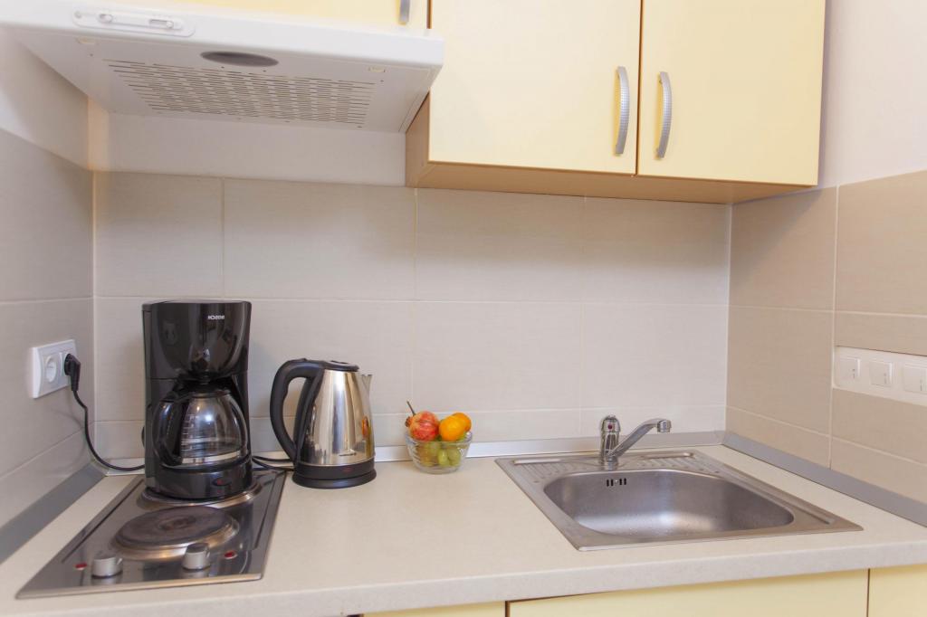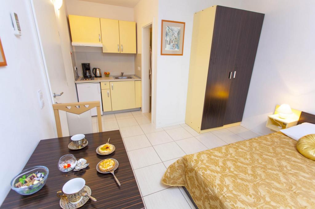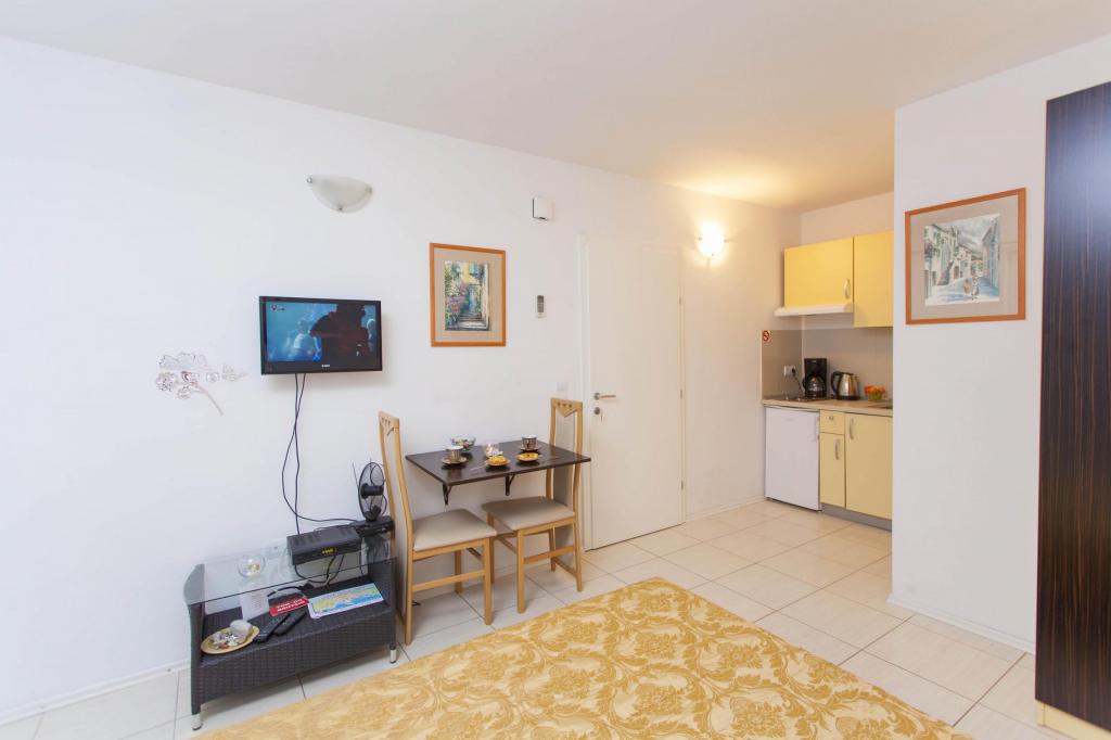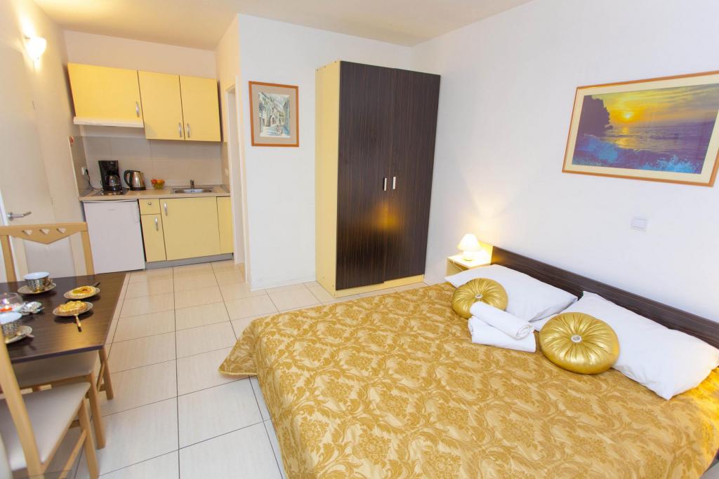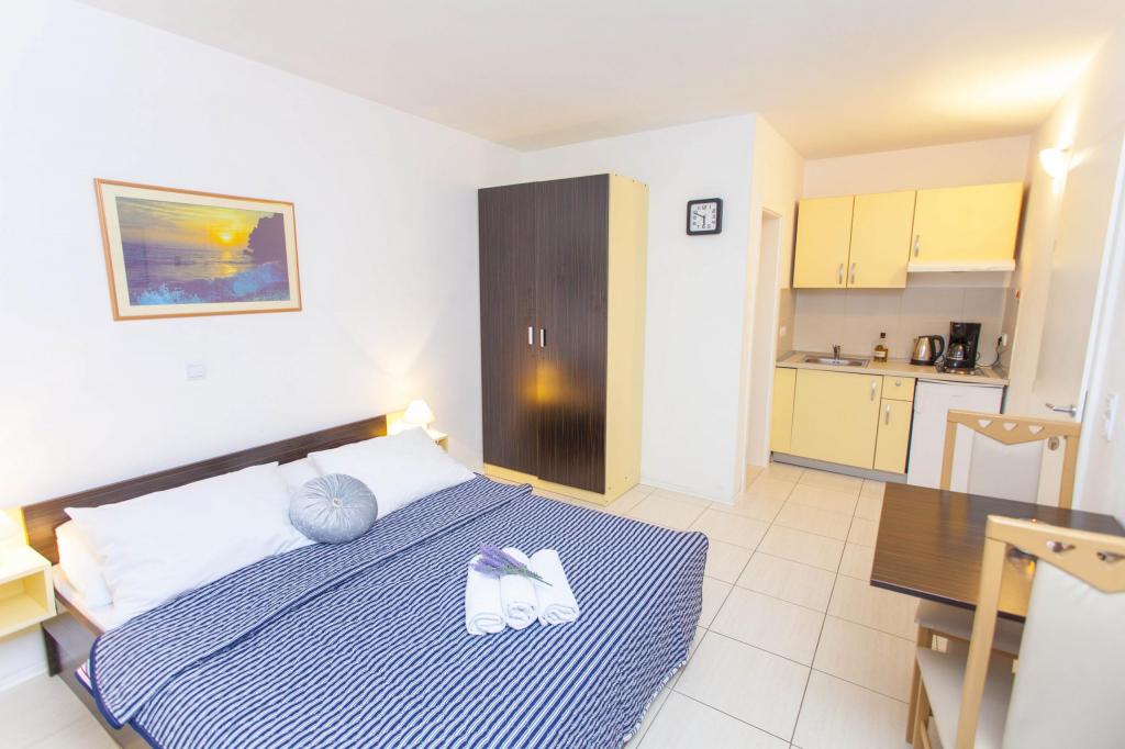 Il propose un hébergement en hôtel à ses clients, qui comprend non seulement la nourriture. Le personnel amical, le nettoyage quotidien des appartements et les informations disponibles sur tout ce qui vous intéresse, vous encourageront à passer des vacances bien méritées. Nous essaierons de vous offrir la possibilité de louer une voiture, le transport à l'aéroport, organiser des excursions, tout ce que vous voulez :)