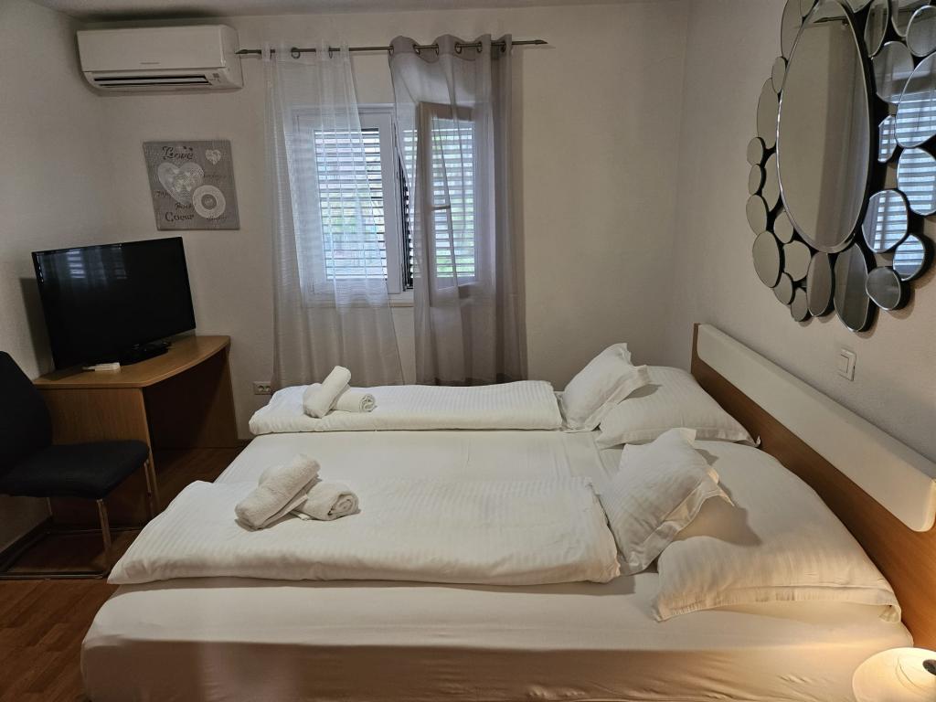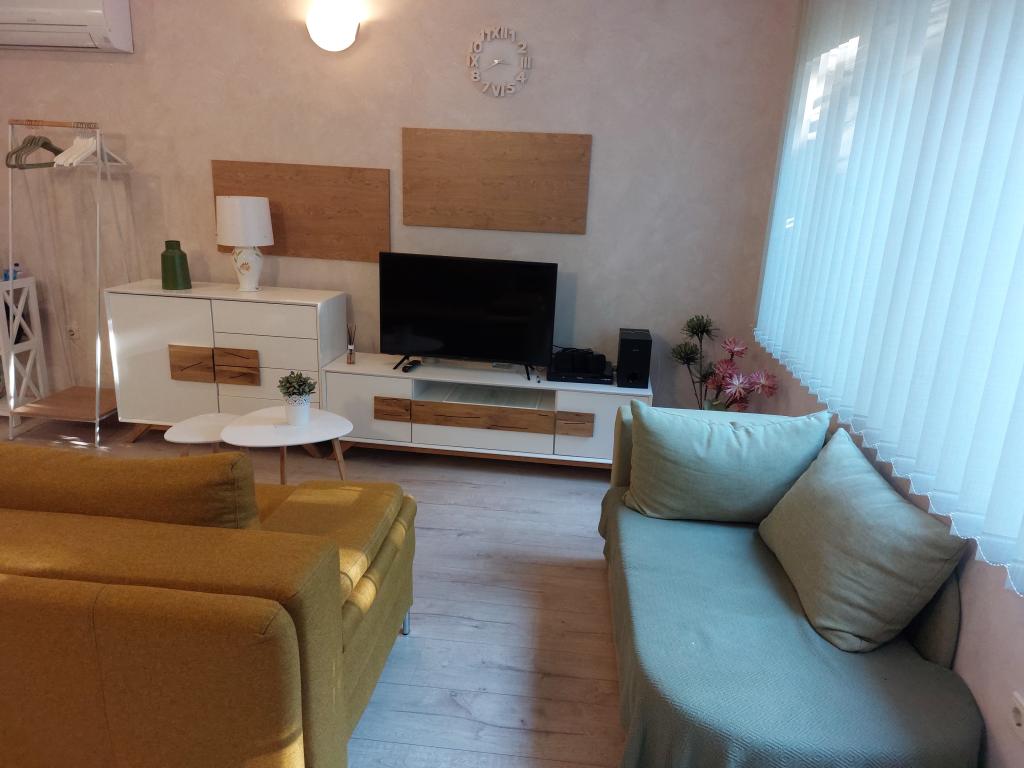 Nos appartements modernes et entièrement équipés vous garantissent un séjour des plus confortables et sereins. Chaque appartement comprend un fer et une table à repasser, un sèche-cheveux, une cafetière à filtre, une bouilloire et un micro-ondes. Vous aurez également accès à tous les ustensiles nécessaires pour préparer et servir vos repas. Tous les logements sont dotés d'une télévision à écran plat, d'une connexion Wi-Fi gratuite et d'espaces détente intérieurs et extérieurs. Ils sont climatisés. Le parking étant limité, il est impératif de réserver à l'avance. Le linge de lit et les serviettes sont fournis à votre arrivée et changés selon vos disponibilités. Un lit bébé est disponible gratuitement sur réservation. L'établissement dispose d'une cour commune aménagée avec du mobilier de jardin et entourée de plantes méditerranéennes : un lieu idéal pour se détendre. Situé dans un quartier calme, à deux pas de la mer, l'établissement se trouve à seulement 2 minutes à pied de la plage et à 10 minutes à pied du centre-ville.