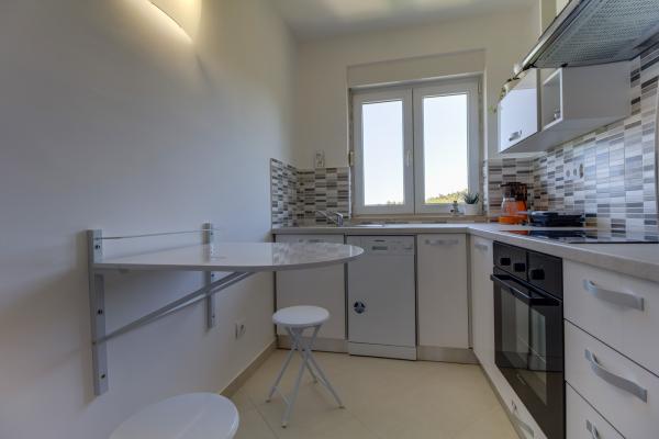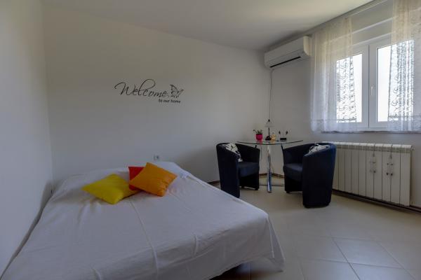 Nouveau, appartement moderne est situé entre deux baies, Valdarke et St. Martin qui est aussi la partie la plus ancienne de la ville. Il est un quartier très calme et très proche du centre, à 800 mètres. La plage qui est atteint par un 100m de la voie pavée. Bien sûr, dans les environs il y a d'autres plages, vous pouvez rejoindre à pied ou en voiture. L'appartement est situé au premier étage et se compose d'une chambre à coucher, cuisine et salle de bains en face du bébé de table à langer et il y a un lit d'enfant. La cuisine est moderne équipée avec lave-vaisselle, réfrigérateur et congélateur, four, cafetière et tous les ustensiles de cuisine nécessaires. Salle de bains avec douche et machine à laver. La chambre est équipée d'une table avec deux fauteuils pour se détendre et un canapé qui se prolonge dans une 150x200cm lit et une armoire. Il est possible d'organiser un lit d'appoint. La chambre est climatisée et équipée d'une télévision et Internet wi-fi. Après accord préalable a permis aux animaux de compagnie bien rangé plomb.