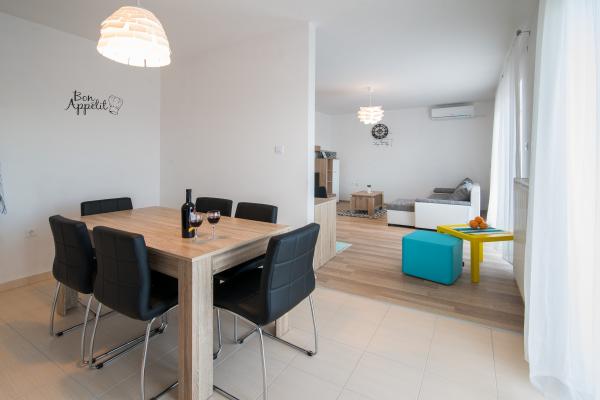 Bel appartement récemment rénové pour 6 personnes 2 sur l'île de Krk, dans Rasopasno. L'appartement a une superficie de 85 m 2 et dispose d'une terrasse de 35 m2 dont la vue magnifique sur les environs. L'appartement dispose de trois chambres à coucher, une salle de séjour, cuisine très bien équipée et deux salles de bains. Si vous êtes à la recherche pour des vacances tranquilles et vous đeljni détente, c'est l'endroit pour vous. Situé à seulement 200 mètres des appartements est un restaurant, et à la même distance et le commerce.