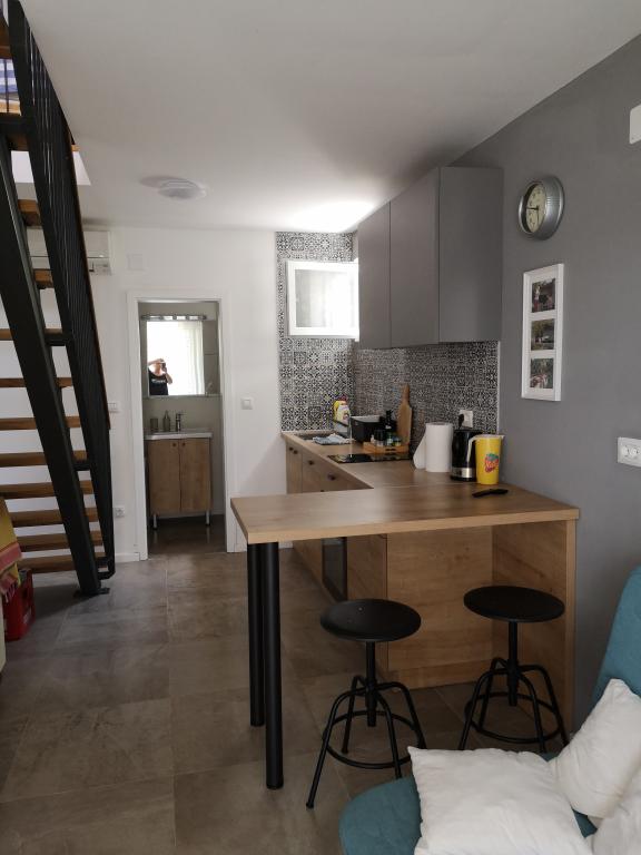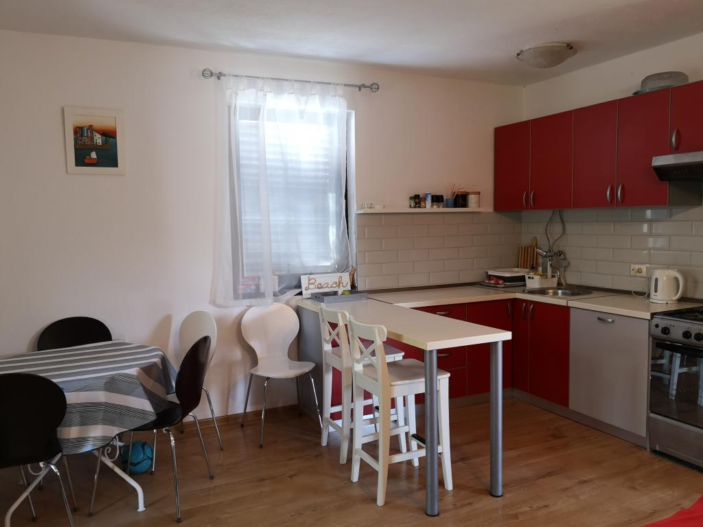 La maison sur la plage, avec un grand jardin et place de parking, idéal pour les familles avec enfants. Ne vous inquiétez pas si vous avez oublié quelque chose ou vous êtes fatigué de la plage, à côté de vous à la mer et vous pourrez profiter du soleil ou de l'ombre à votre convenance. Maison de vacances est situé au coeur d'un petit village de pêcheurs près de Poljica Marina et Trogir. La maison dispose d'une cuisine, salle à manger, salle de bains au rez-de-chaussée qui mène à la terrasse avec salon de jardin. A l'étage, deux chambres avec six lits et une toilette. La maison est entièrement équipée pour les vacances les plus agréables.