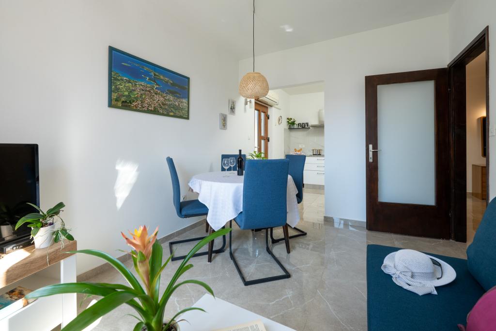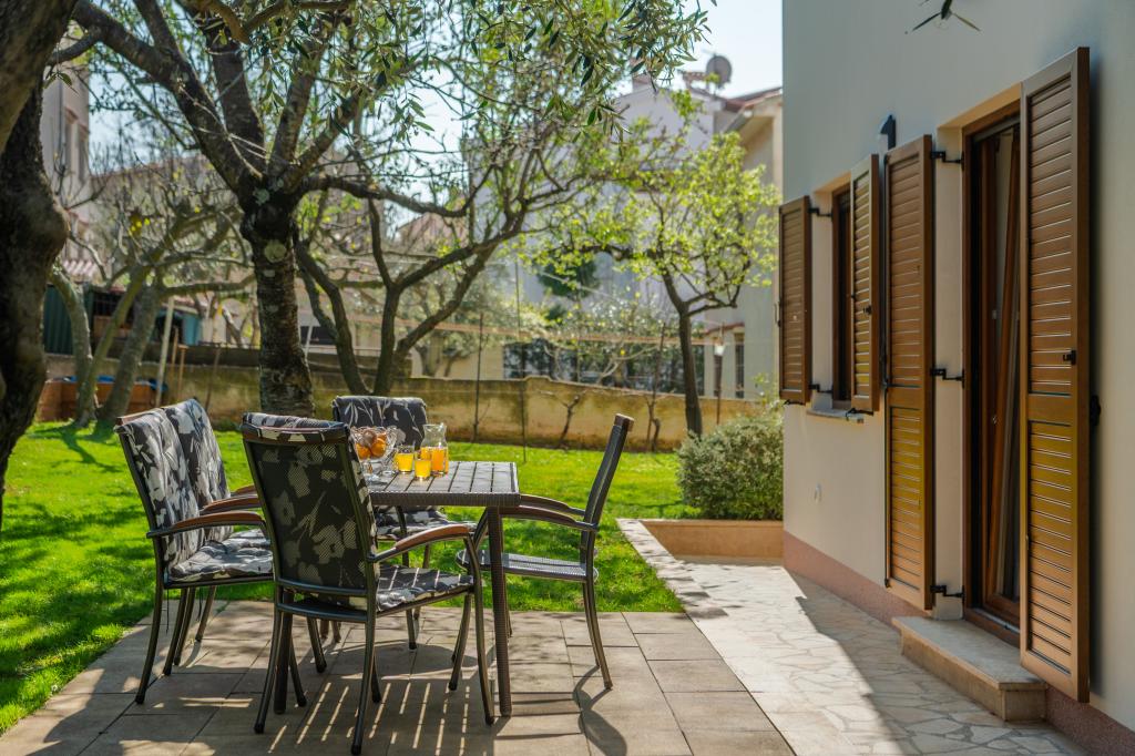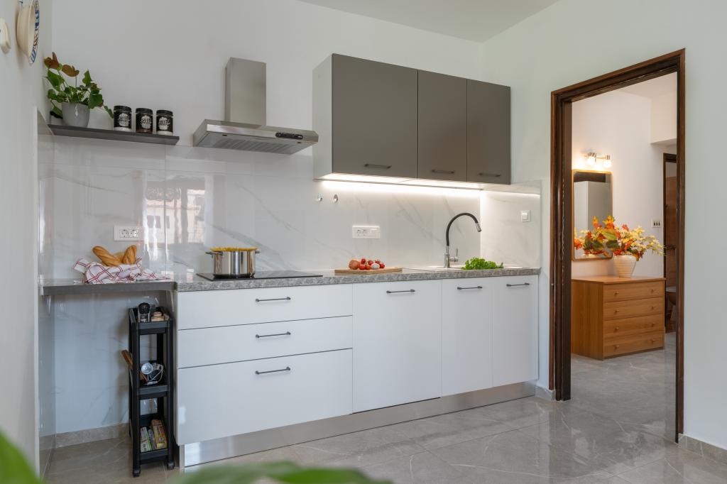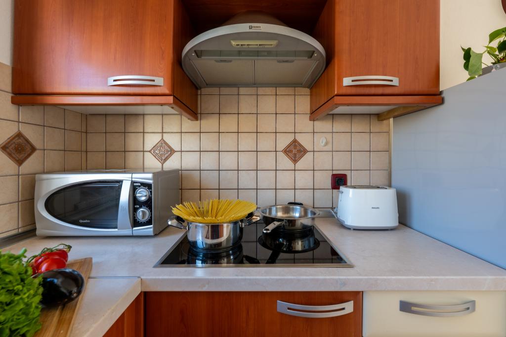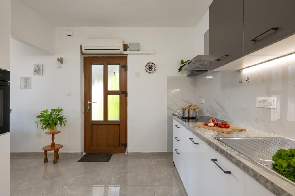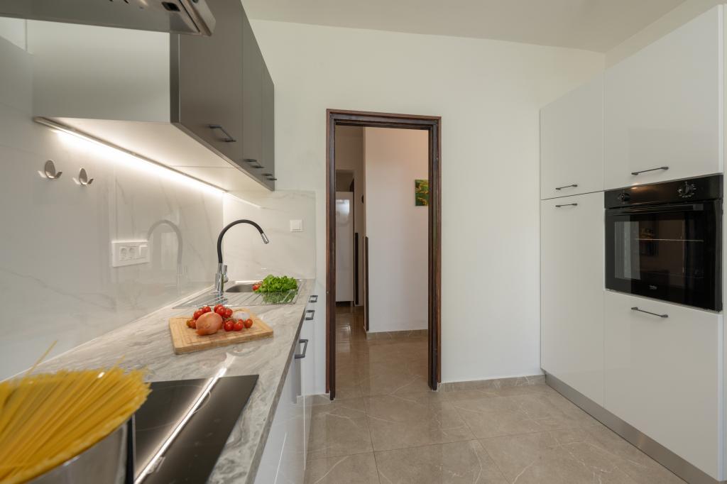 La maison est située dans un quartier calme de Medulin, à 250-300 m de la plage, et dispose d'un grand jardin et d'un parking privé. Quatre appartements modernes et entièrement équipés sont disponibles à la location. Deux appartements se trouvent au rez-de-chaussée : l'appartement n° 1 comprend deux chambres, une cuisine, un séjour, une salle de bains et une terrasse ; l'appartement n° 2 comprend une chambre, une cuisine, une salle de bains et une terrasse donnant sur le jardin. Au deuxième étage, l'appartement n° 3 comprend deux chambres, une cuisine, un séjour, une salle de bains et un balcon ; l'appartement n° 4 comprend une chambre, une cuisine ouverte sur le séjour, une salle de bains et un balcon. Tous les appartements sont climatisés et équipés d'une connexion Wi-Fi et de la télévision par satellite. Le prix comprend le linge de lit, les serviettes, la taxe de séjour et les frais d'enregistrement. Chaque appartement dispose d'une place de parking privative, d'un jardin et d'un barbecue portable. La location d'un lave-linge est de 5 € et celle d'un lit d'appoint de 10 €. Le parking et la cour sont sous vidéosurveillance.