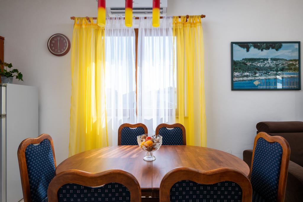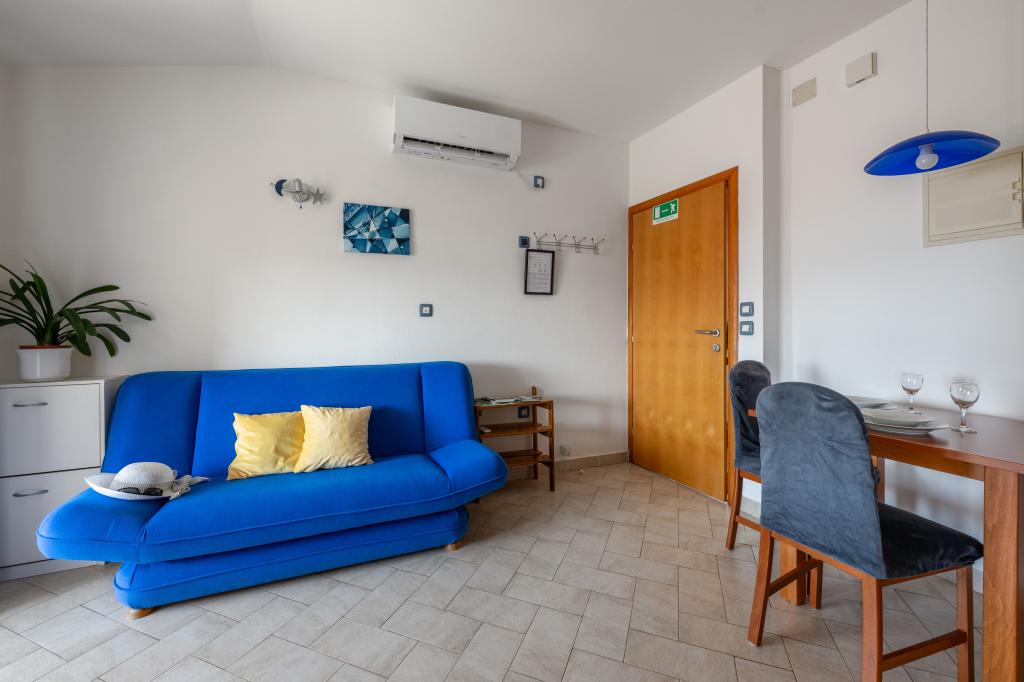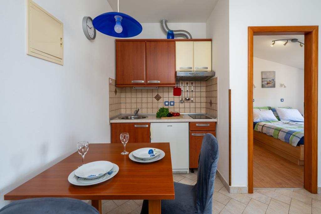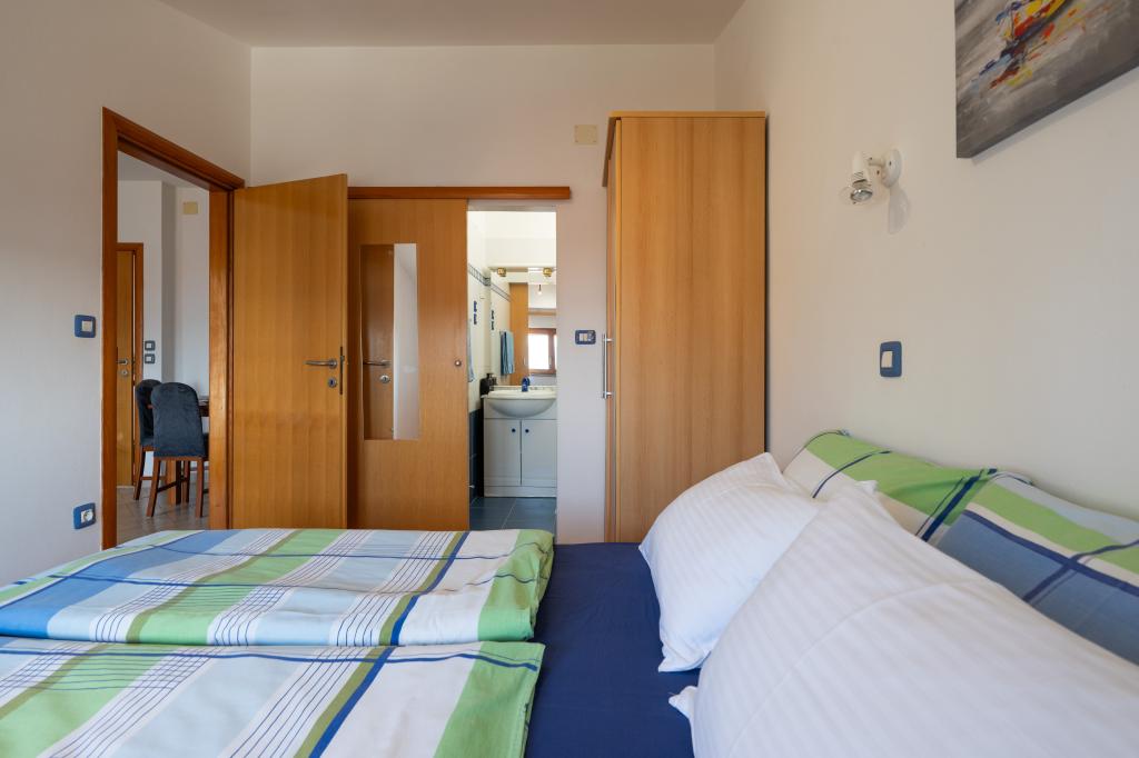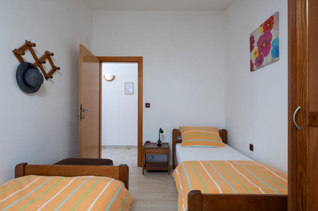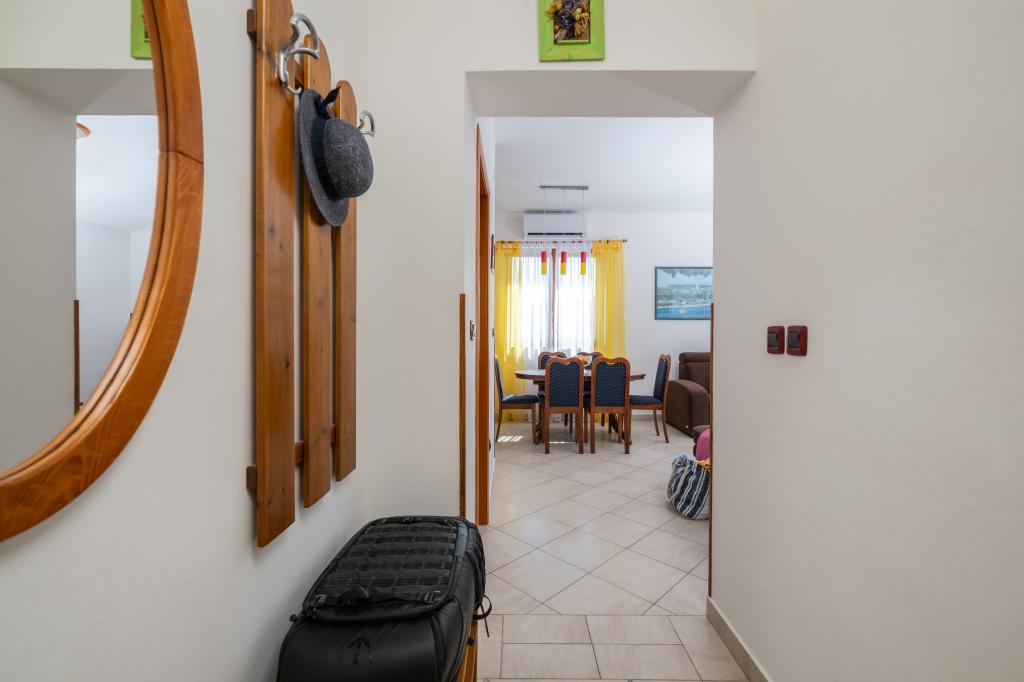 La maison est située dans un quartier calme de Medulin, à 250-300 m de la plage, et dispose d'un grand jardin et d'un parking privé. Quatre appartements modernes et entièrement équipés sont disponibles à la location. Deux appartements se trouvent au rez-de-chaussée : l'appartement n° 1 comprend deux chambres, une cuisine, un séjour, une salle de bains et une terrasse ; l'appartement n° 2 comprend une chambre, une cuisine, une salle de bains et une terrasse donnant sur le jardin. Au deuxième étage, l'appartement n° 3 comprend deux chambres, une cuisine, un séjour, une salle de bains et un balcon ; l'appartement n° 4 comprend une chambre, une cuisine ouverte sur le séjour, une salle de bains et un balcon. Tous les appartements sont climatisés et équipés d'une connexion Wi-Fi et de la télévision par satellite. Le prix comprend le linge de lit, les serviettes, la taxe de séjour et les frais d'enregistrement. Chaque appartement dispose d'une place de parking privative, d'un jardin et d'un barbecue portable. La location d'un lave-linge est de 5 € et celle d'un lit d'appoint de 10 €. Le parking et la cour sont sous vidéosurveillance.