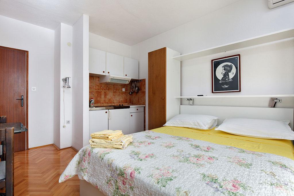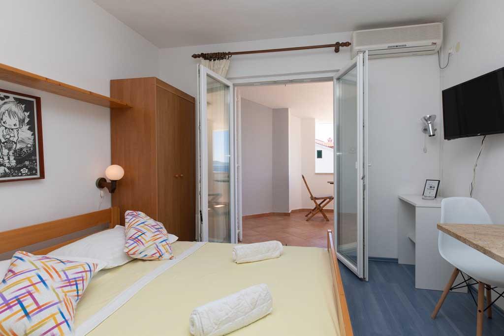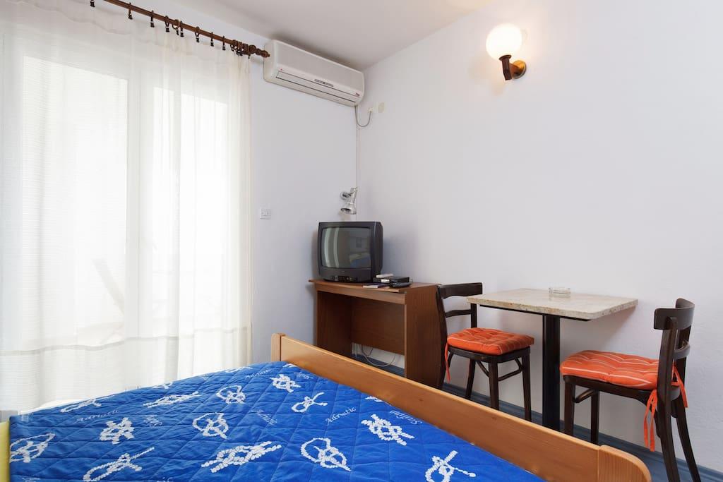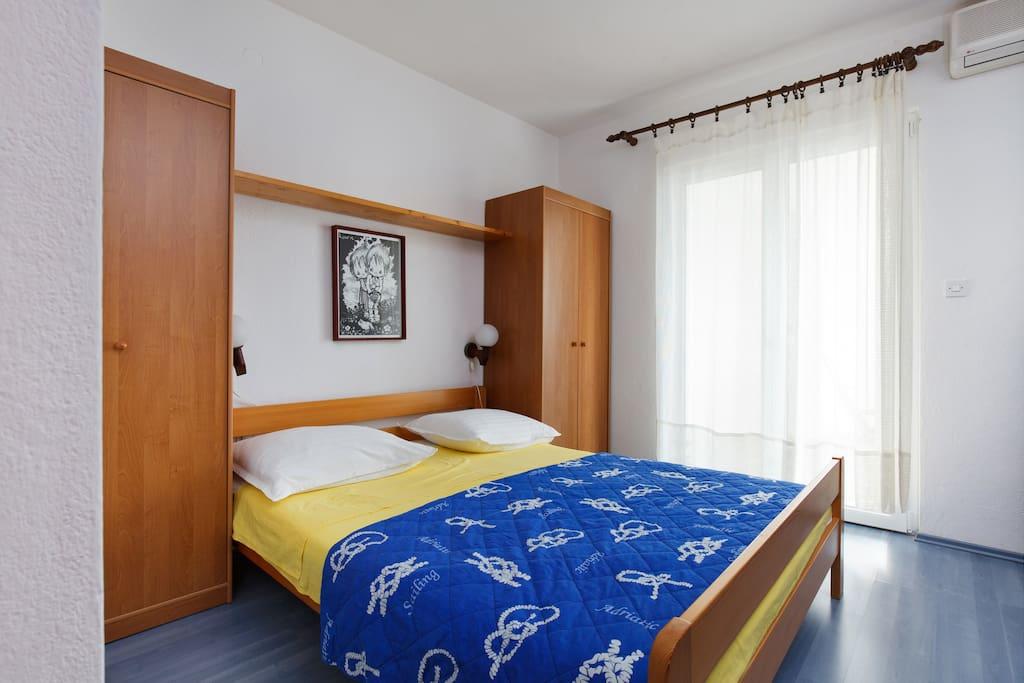 Les appartements Ban sont situés dans une petite localité touristique Médicis connue pour ses belles plages. Il y a 3 appartements dans la maison. Nous avons deux studios pour deux personnes. Chaque studio dispose d'un grand balcon avec une vue magnifique sur la mer, de la télévision par satellite, de la climatisation, du WiFi, d'une cuisine et d'une salle de bains. Dans le grenier il y a un appartement pour six personnes. L'appartement sur le toit a une vue vraiment incroyable sur la mer et les îles. L'appartement dispose de deux chambres, deux salles de bains, deux balcons et un grand salon avec cuisine. Le penthouse quatre étoiles dispose d'une grande télévision, chaînes satellite et Internet WiFi. Chaque chambre est climatisée. La cuisine est entièrement équipée avec un grand réfrigérateur, un four, tous les ustensiles nécessaires et un lave-vaisselle. Un lave-linge est également à votre disposition. Un grand parking est situé juste à côté de la maison. La plage est à seulement 40 mètres. Les plages sont nombreuses et belles. Deux grandes plages ont un bar de plage, les autres plages sont plus petites et plus intimes.