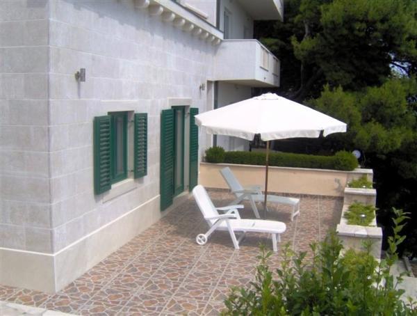 Linstallation est située front de mer, avec un balcon avec vue sur lîle dalmate de Brac. Zone très calme et paisible, loin de la route. Plage de sable privée avec un bateau damarrage. Proche des commerces, des bureaux de poste et les guichets automatiques à environ 1 km. Parking. Villa de construction récente, situé à 10 minutes en voiture de Omis, ville extrêmement intéressant à lembouchure de la rivière Cetina et un contenu riche sur le fleuve.