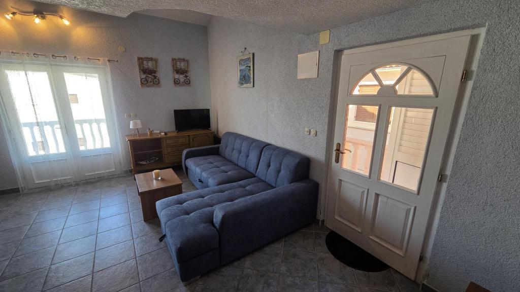 L'appartement se compose de deux chambres : une avec un lit double et l'autre avec deux lits simples. Il comprend également une salle de bains, un séjour avec cuisine ouverte et une grande terrasse. Une place de parking est disponible à côté de l'appartement. Barbecue, climatisation et Wi-Fi sont à votre disposition. La mer est accessible en 5 minutes à pied, et le centre-ville et ses commerces en 10 minutes. Une magnifique et vaste pinède se trouve à proximité. Environnement calme et paisible.