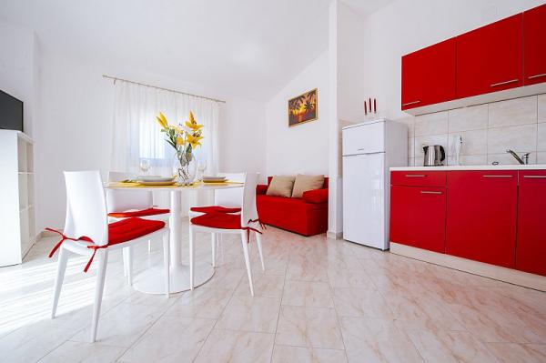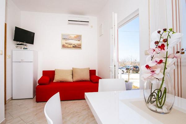 Immeuble Maria est situé dans Zukve-Vrsi, juste à quelques kilomètres de la ville historique de Nin et à 25 km de la ville de Zadar. Situé dans un quartier calme, loin du bruit et de la plage de galets gužve.Pripadajuća est à seulement 600 mètres et à une distance de 700 mètres, il ya une plage de sable. Le parking dans la cour, ainsi que d'une grille qui pourrait servir. Cette région est idéale pour les amateurs de vélo, parce que beaucoup de vélo stazama.Uz la mer il ya une promenade qui relie la place Zukve et Vrsi offre une belle vue sur le coucher de soleil dans la soirée. Pour les amateurs d'adrénaline, dans la petite ville de Nin est célèbre plage de kitesurf avec l'école de surf. Les amateurs de sites historiques peuvent profiter de monuments culturels, des églises et des vestiges historiques de toute la région, en particulier la petite ville de Nin. Tout le contenu, supermarché, restaurant, café, office de tourisme, bureau de poste, église, etc. sont dans l'environnement de 2-3 km.