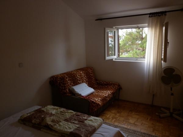 Sympathique appartement dans une maison avec un grand jardin ombragé, quelque chose hors de la ville de Nin. La maison est située à 300m de la mer, à 700 m de la plage et à 10 minutes à pied du centre. Le stationnement est prévu, chaque appartement dispose d'une terrasse tandis que les utilisateurs des chambres avec salle de bains pourrait utiliser une table dans la loggia ou dans la cour.