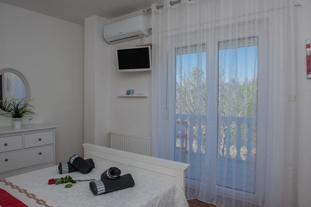 La résidence Fila comprend 6 appartements : 4 appartements d'une pièce et 2 studios. Située au calme, elle se trouve à environ 30 mètres de la plage de Mulo-Vrsi et à 250 mètres du centre-ville, où vous trouverez de nombreux restaurants, boutiques de souvenirs et commerces. À proximité immédiate (environ 50 mètres), vous trouverez deux cafés et un fast-food. La plage de Mulo-Vrsi propose diverses activités sportives telles que le kitesurf, la planche à voile, la location de bateaux, de parasols et de transats.
