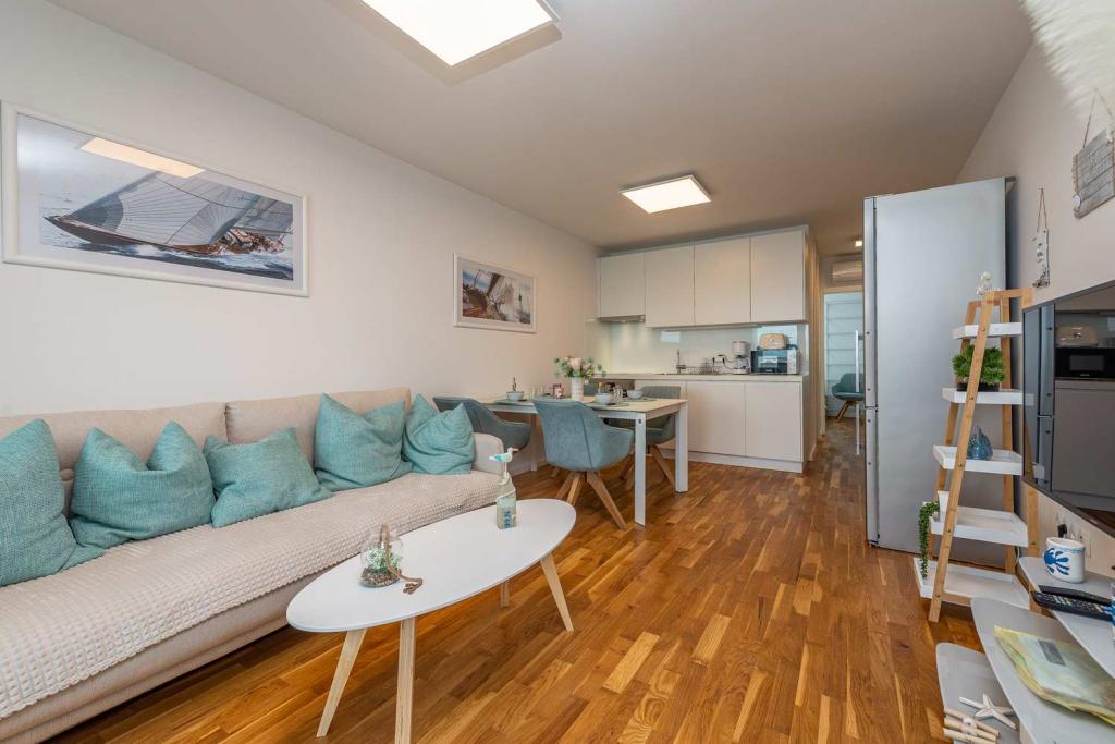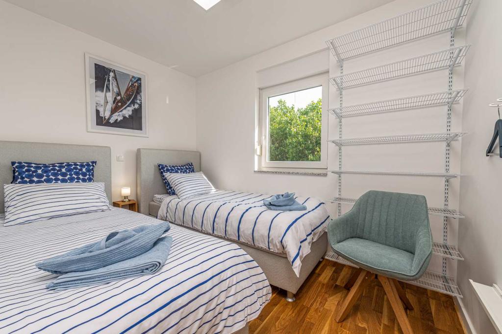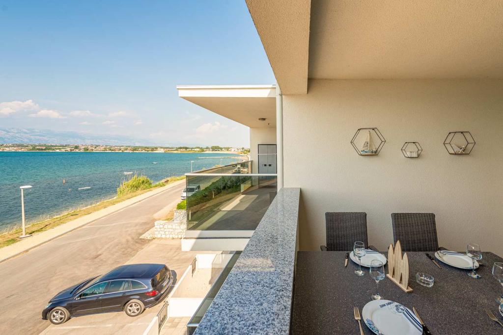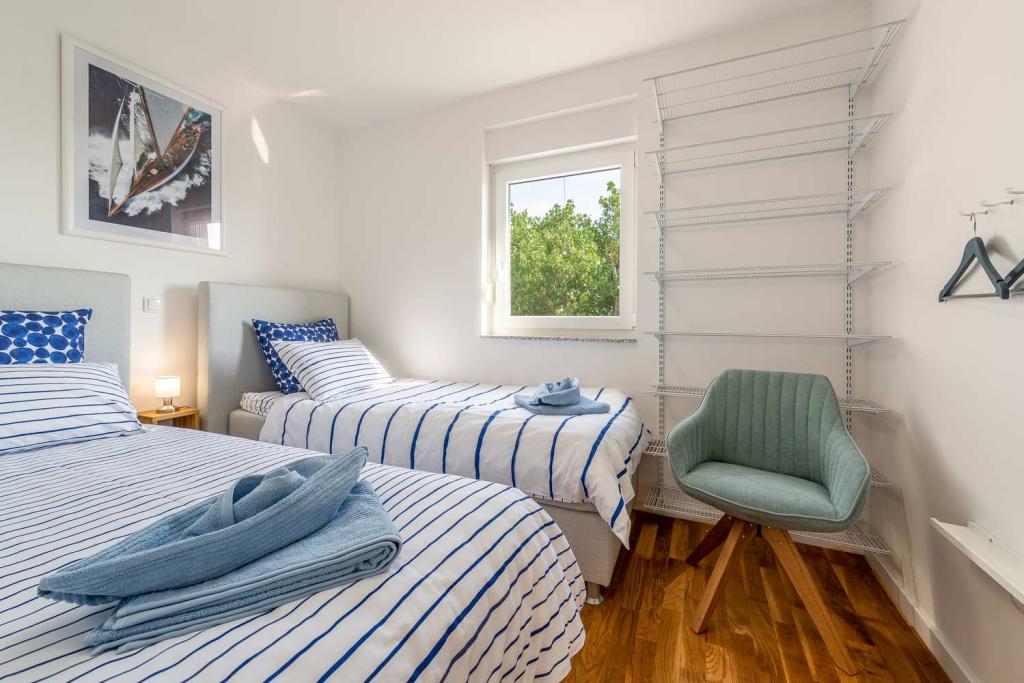 Appartement en première ligne face à la mer ! À 10 mètres de la plage piétonne. À 5 minutes de la vieille ville de Nin. Appartement moderne et joliment décoré, cuisine très bien équipée (lave-vaisselle, grille-pain, bouilloire, cafetière électrique, micro-ondes, réfrigérateur et congélateur, four, 4 plaques à induction). Une chambre avec un lit double et une chambre avec deux lits simples. Douche et lave-linge. Superbe vue sur la mer depuis votre terrasse.