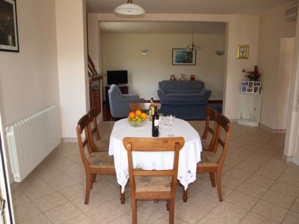 Relaxant penthouse à Nin 4 minutes en voiture du centre-ville. La maison dispose de 170 m2 avec un jardin de 1000 m2. Au sous-sol il y a une salle de garage et buanderie. Au premier étage est un grand salon avec cheminée et une cuisine spacieuse avec sortie sur la terrasse. Au premier étage se trouve et WC. Au deuxième étage, il y a 3 chambres spacieuses, dont deux ont des balcons. Dans deux chambres il y a deux lits simples, tandis que les maisons restantes d'un lit double. Au deuxième étage, il y a une salle de bains avec wc. Dans la maison sont disponibles 2 la climatisation et une connexion Internet gratuite. Dans le jardin il y a un bosquet d'oliviers, des fleurs et la pelouse. Le jardin est entièrement clôturé et il est donc adapté aux familles avec enfants, car il a beaucoup d'espace pour jouer. Le jardin est également disponible grill. La maison est idéale pour un séjour de détente sans le stress des embouteillages. Il est entouré par la nature. La maison est possible de garer deux voitures.