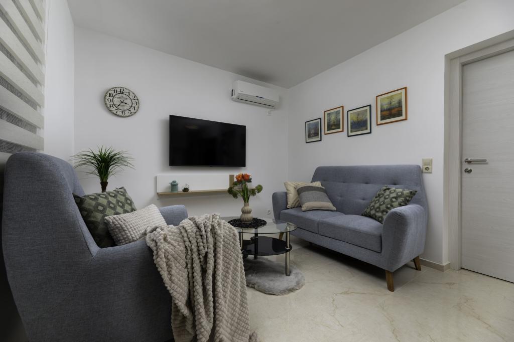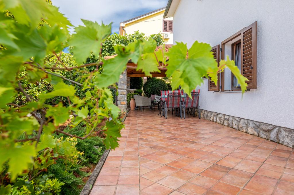 Situé dans un quartier calme de Njivice, sur l'île de Krk, cet appartement de plain-pied récemment rénové offre un parfait équilibre entre confort et ambiance méditerranéenne décontractée. Idéal pour les familles ou les petits groupes souhaitant passer des vacances paisibles et intimes près de la mer, il comprend deux chambres spacieuses, une salle de bains moderne et des toilettes séparées. L'une des chambres dispose d'une pièce supplémentaire avec un lit d'appoint. Une cuisine entièrement équipée et un salon confortable vous garantissent un séjour des plus agréables. Sa terrasse couverte, entourée de verdure, est un atout majeur : parfaite pour savourer un café le matin, un repas en famille ou se détendre en soirée. Vous bénéficierez de la climatisation, du Wi-Fi, d'un parking privé, d'une douche extérieure et d'un barbecue. La plage se trouve à seulement 600 mètres et vous trouverez à proximité restaurants, boutiques et toutes les commodités nécessaires pour des vacances sans souci. Appréciez la mer cristalline, les promenades le long du littoral et l'atmosphère authentique de l'île, qui offre un parfait équilibre entre repos et activités.
