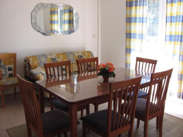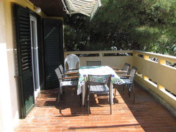 Entièrement équipé et moderne appartement à 200 mètres du centre et à 300 m de la mer dans un quartier calme avec beaucoup de verdure et un espace de stationnement. Il est situé au 1er étage avec une entrée séparée, 3 chambres, grand salon donnant sur une terrasse avec auvent et barbecue. Il a également 2 salles de bains une avec baignoire l'autre avec douche, air conditionné, télévision par satellite et une connexion Internet gratuite. La cuisine est équipée d'une cuisinière, réfrigérateur, micro-ondes et tous les ustensiles. Service de blanchisserie et lit bébé sur demande.