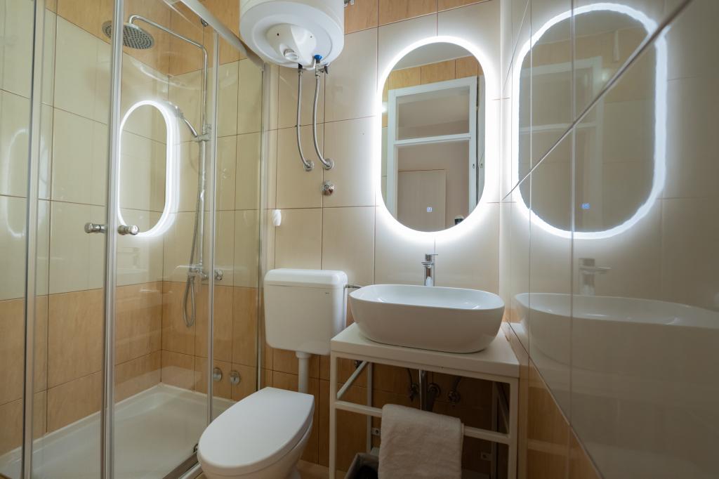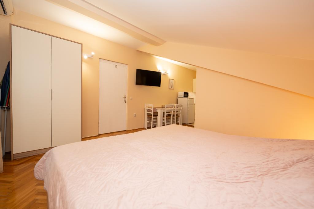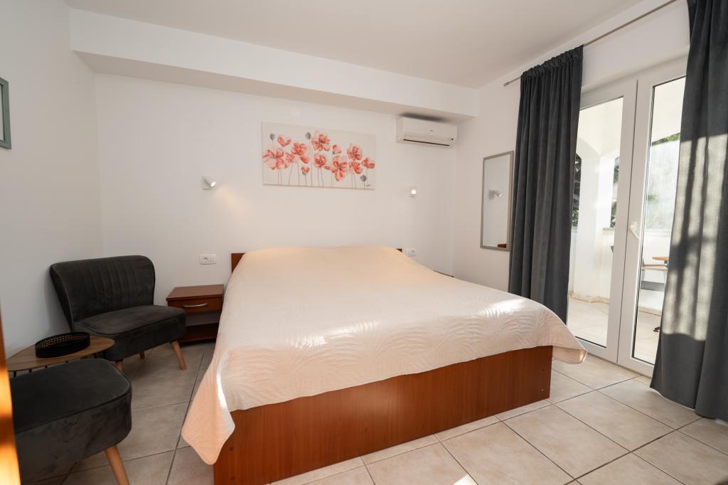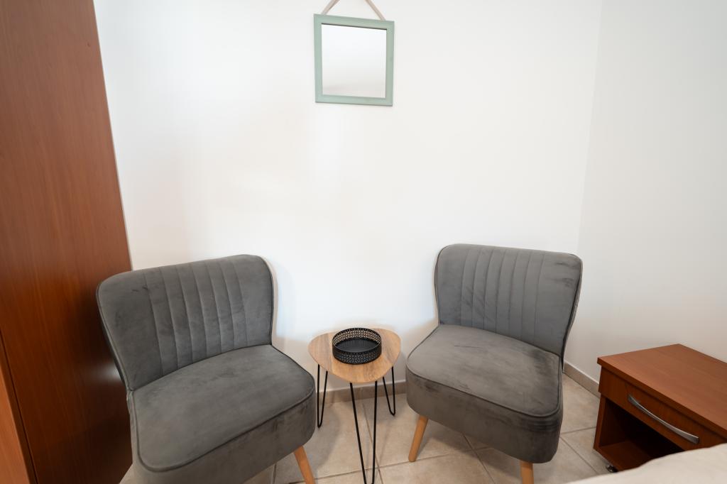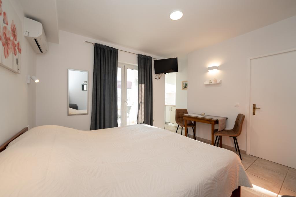 Très bien situé, un peu à l'écart de l'agitation de la ville, les propriétaires sont super, discrets. L'appartement a une entrée séparée, devant la maison il y a une grande cour avec transats et aires de jeux pour enfants, et la mer est très proche.
