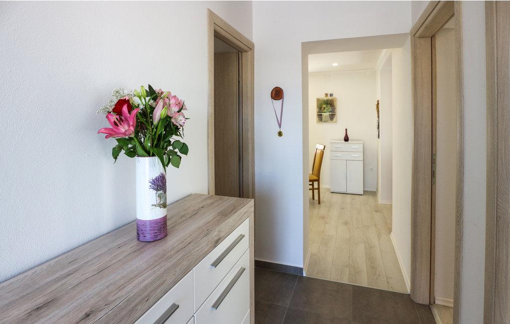 L'appartement se situe au rez-de-chaussée surélevé d'une maison familiale en plein centre-ville. Une place de parking est mise à la disposition des hôtes dans le jardin. Il comprend deux chambres doubles, une salle de bains, une cuisine ouverte sur le coin repas et une agréable terrasse. Toutes les commodités sont à proximité : commerces, restaurants, cafés et autres attractions touristiques, ce qui en fait un choix idéal pour un séjour agréable et sans souci.