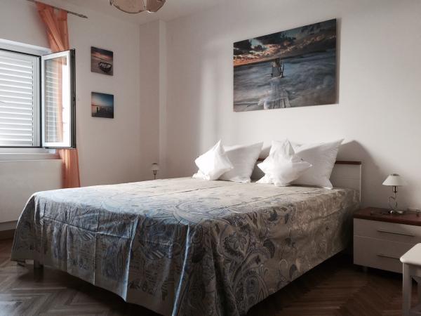 Les appartements entièrement meublés de luxe dans un quartier calme de Novi Vinodolski. 300m de la plage (5 min à pied) et à 10 minutes à pied du centre. petit appartement est situé au rez-de-chaussée et grande au premier étage de la maison. L'intérieur de la petite dispose d'une cuisine, salle de séjour avec canapé-lit, salle de bains et une chambre. Le grand appartement se compose d'une grande cuisine, deux salles de bains, grandes terrasses, balcons, salon et trois chambres spacieuses avec six lits. Il y a un jardin avec barbecue. Machine à laver sur demande. Rabais dans la pré-saison.