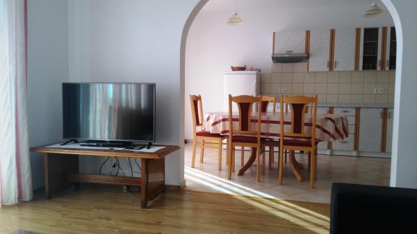 Les deux appartements sont situés dans une maison familiale de construction récente. Les appartements sont neufs et équipés de mobilier neuf et des appareils (micro-ondes, lave-linge, TV satellite, WiFi ...), avec des terrasses et des balcons donnant sur la mer. Aussi les deux suites sont climatisées (AC est inclus dans le prix). House est entouré de verdure, et il est possible d'utiliser le jardin et gril, et les véhicules du parc dans la cour.