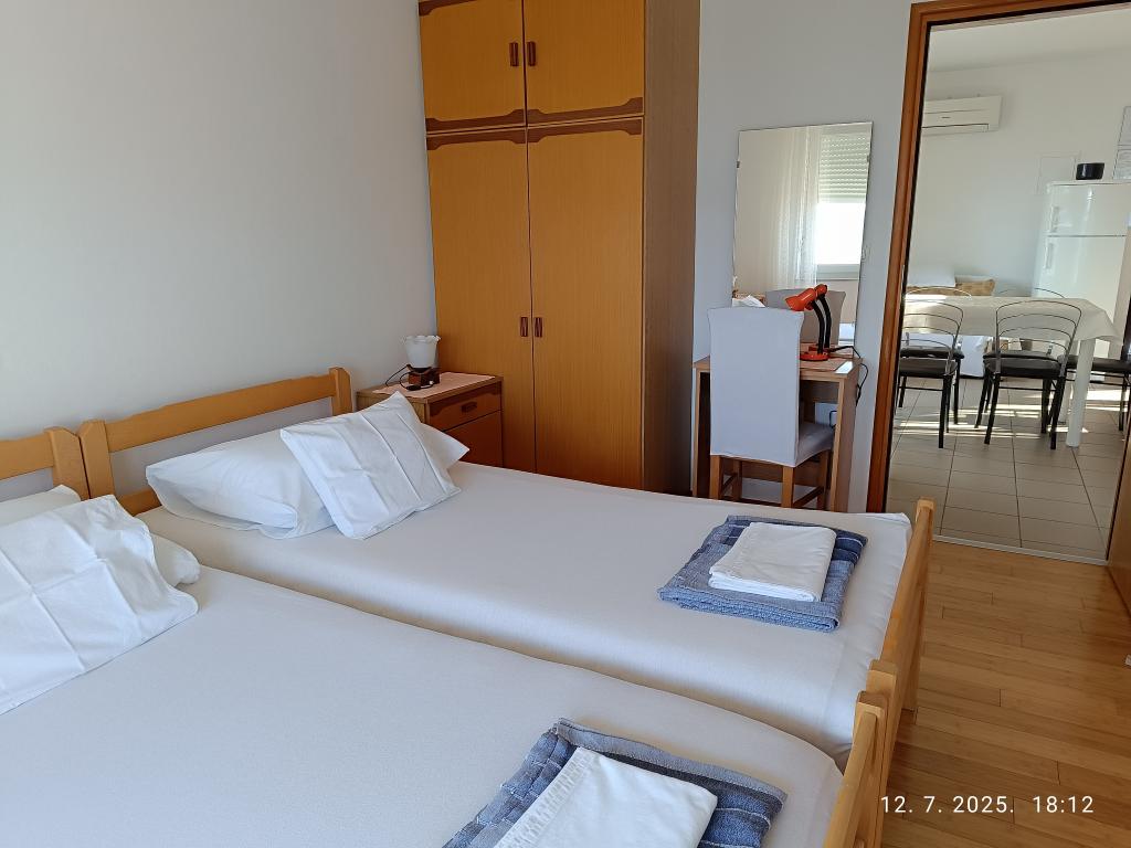 Nous étions en vacances avec des amis et avions deux appartements (A4 et A4), un pour nous et un pour nos amis. Ils étaient côte à côte et partageaient un petit couloir communiquant avec les deux appartements. Vraiment pratique ! L'appartement était joliment meublé, avec une vue magnifique et la mer à deux pas. Les hôtes étaient incroyablement chaleureux et serviables. Nous nous sommes sentis comme chez nous ! Je le recommande sans hésiter – nous y retournerions sans hésiter ! Cordialement, Anna