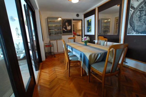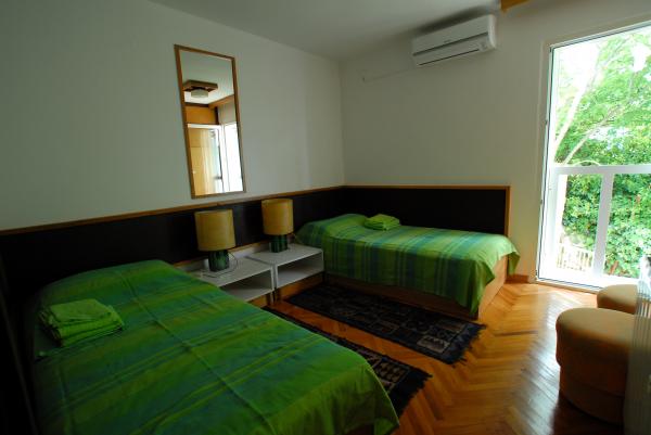 Villa Vaho construit et décoré de la fin des années 60. Le centre de Novi Vinodolski besoin est à 20 minutes à pied de la mer. Il est situé à 5 minutes de la mer avec une vue magnifique sur l'île de Krk. La maison possède un jardin avant et arrière avec beaucoup d'ombre et les arbres, construit sur deux niveaux sont donc situés les appartements. L'appartement supérieur dispose de 3 chambres, grand salon avec terrasse, chambres avec vue sur la mer, une salle de bain avec WC et WC séparé, cuisine et une partie de la salle à manger. Il peut accueillir 6 personnes, l'espace est climatisé. Il y a un lave-vaisselle, internet. Portes de cuisine ouvrent sur une terrasse et barbecue. l'appartement du bas est un espace ouvert à l'emploi, avec des chaises longues, une table à manger, un jardin et de l'ombre, avec une porte menant à la plage. Il se compose d'une chambre et un salon où vous pouvez dormir, salle de bains et la cuisine. Il peut accueillir 4 personnes, l'espace est climatisé. La maison dispose d'un parking pour 2-3 voitures, un magasin local est à 10 minutes de marche.